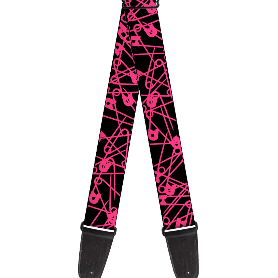 Guitar Strap – Safety Pins Black Fuchsia