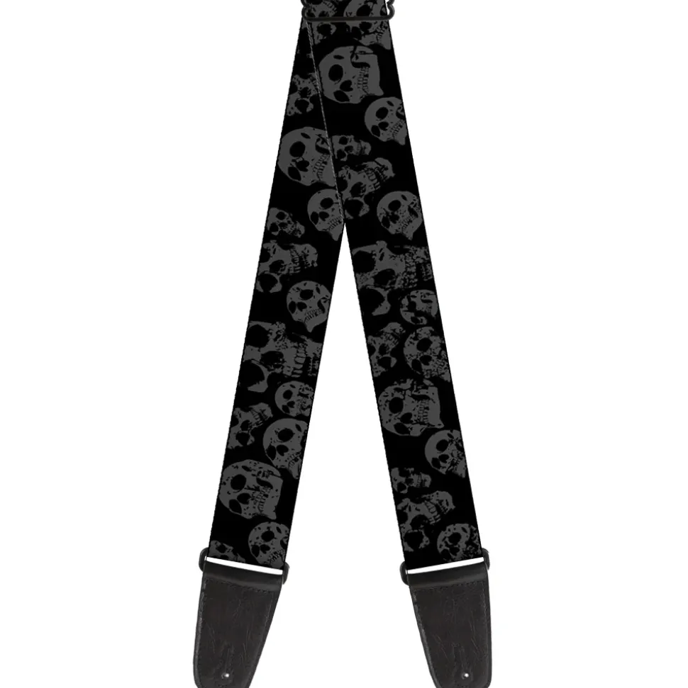 Guitar Strap – Skulls Stacked Weathered Black Gray