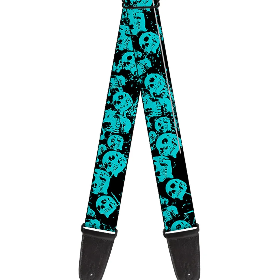 Guitar Strap – Skulls Stacked Weathered Black Teal