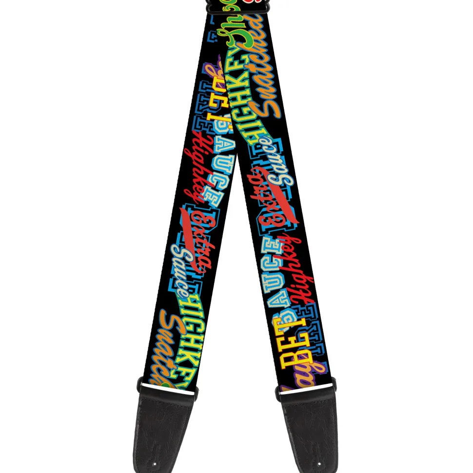 Guitar Strap - Slang Verbiage Stacked Black/Multi Color