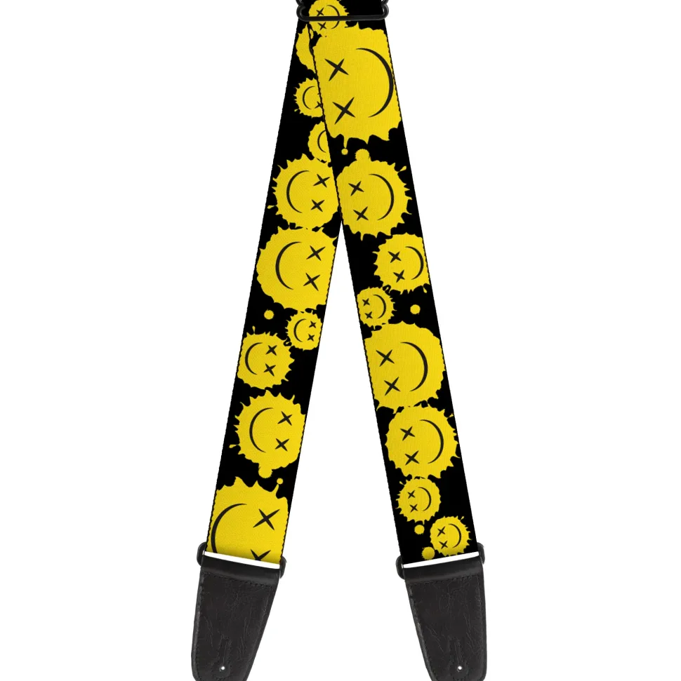 Guitar Strap – Smiley Face Splatter Scattered Black/Yellow