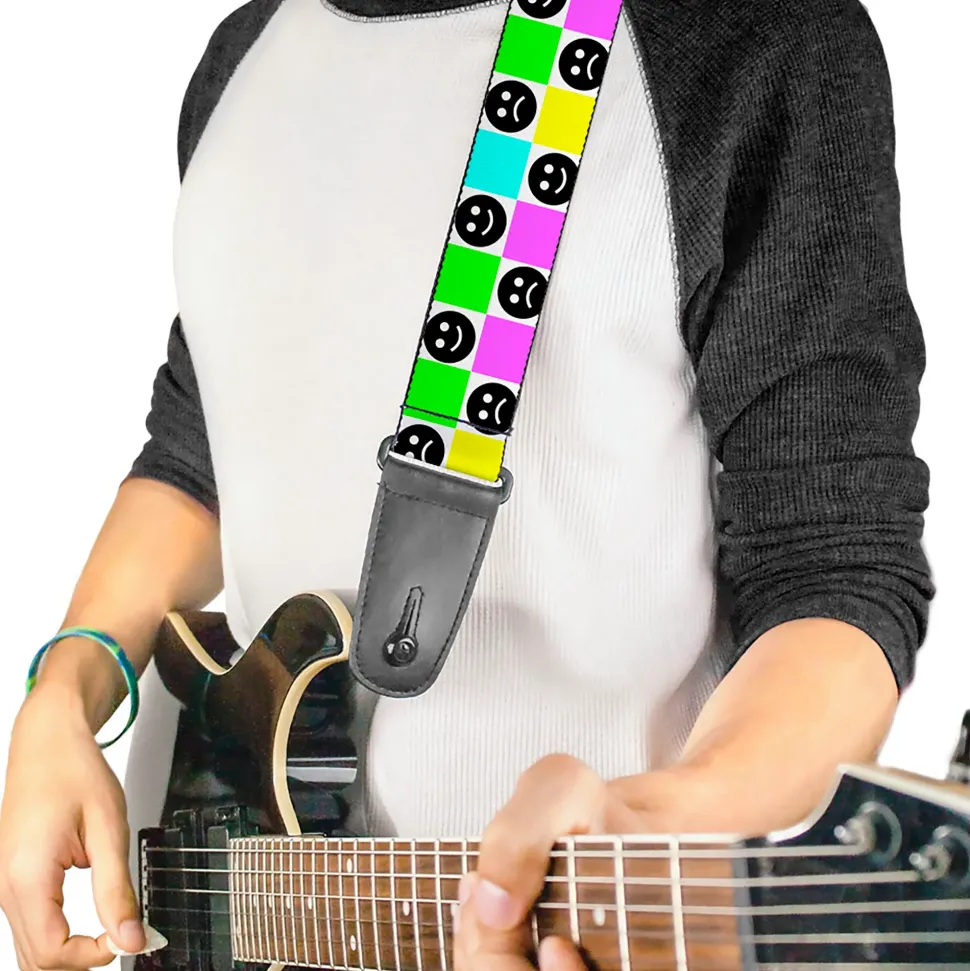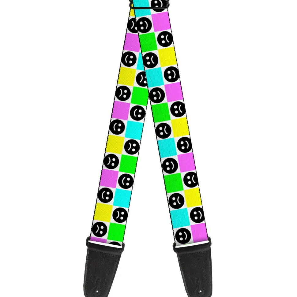 Guitar Strap - Smiley Sad Face Checker Multi Color/White