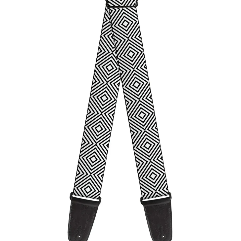 Guitar Strap - Square Lines White Black