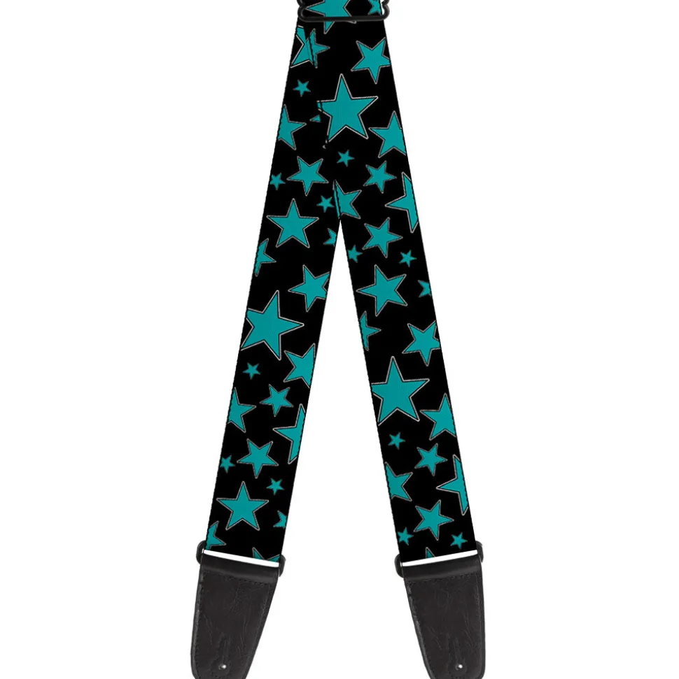 Guitar Strap - Stars Multi Stars Black Turquoise