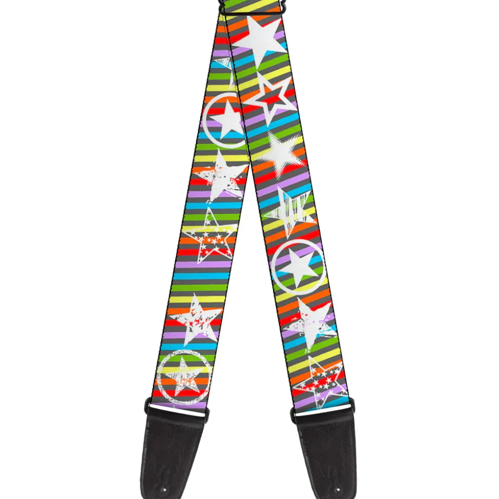 Guitar Strap – Stars w Lines Gray Multi Color White