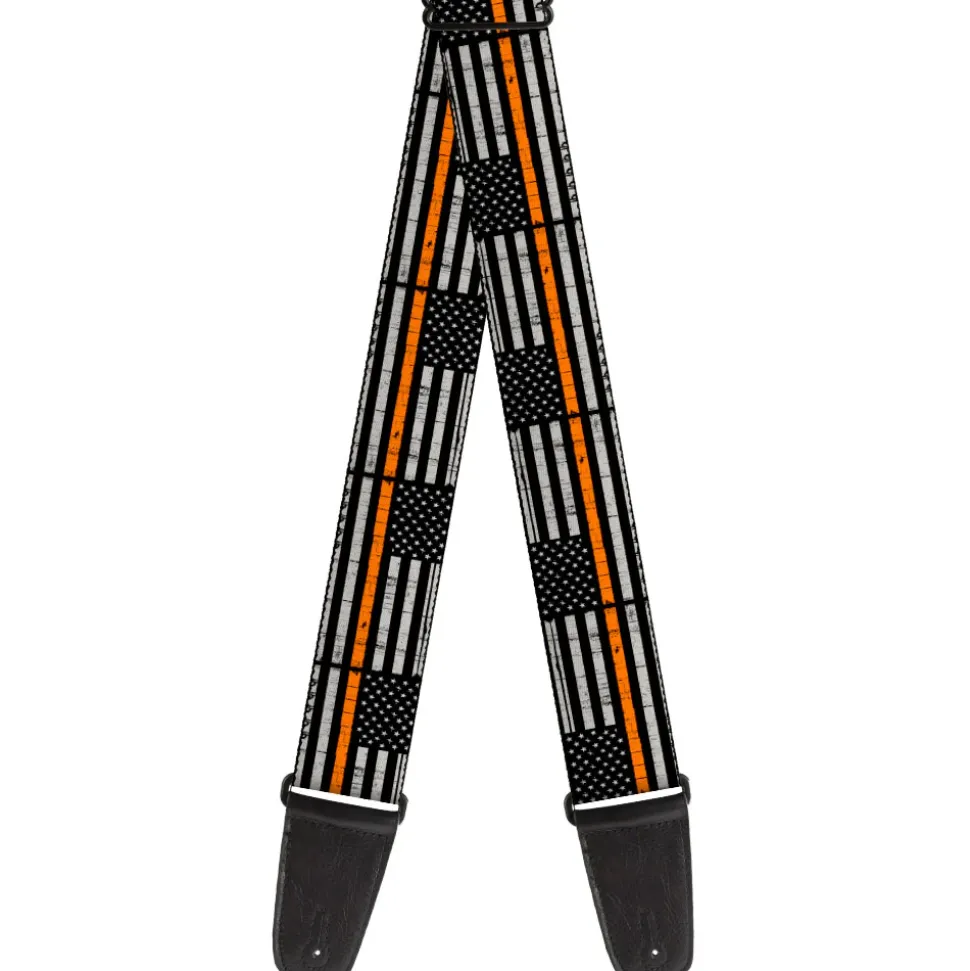 Guitar Strap - Thin Orange Line Flag Weathered Black/Gray/Orange