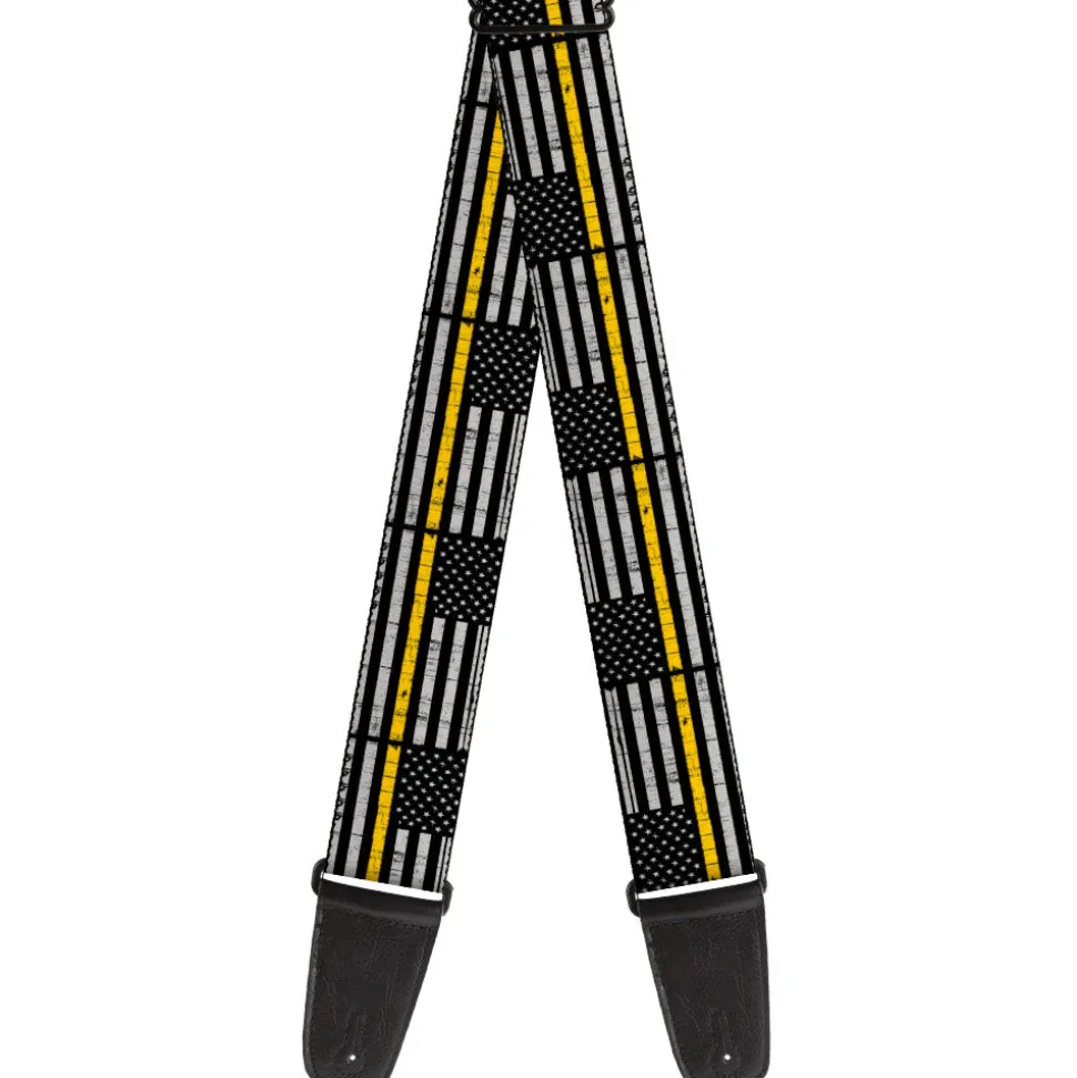 Guitar Strap – Thin Yellow Line Flag Weathered Black/Gray/Yellow