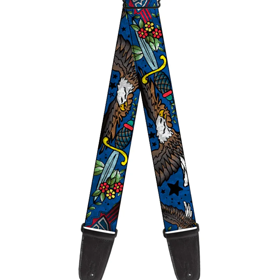 Guitar Strap - Truth and Justice CLOSE-UP Blue