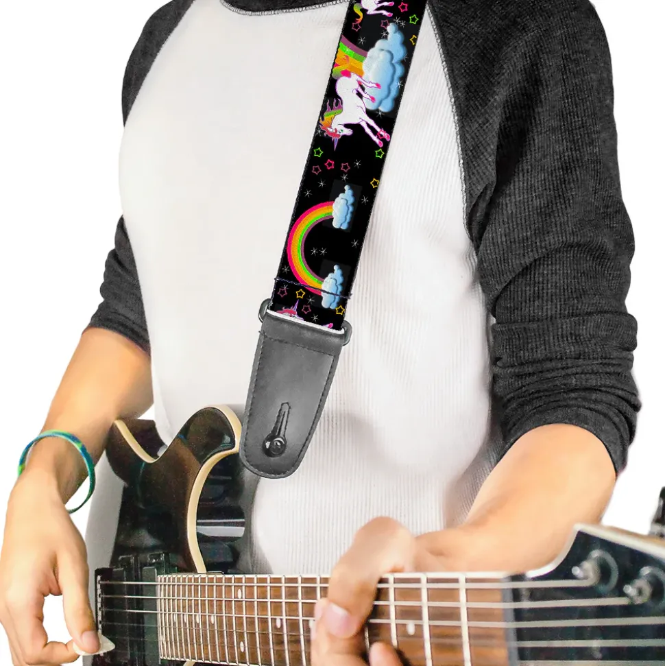 Guitar Strap – Unicorns Rainbows Stars Black