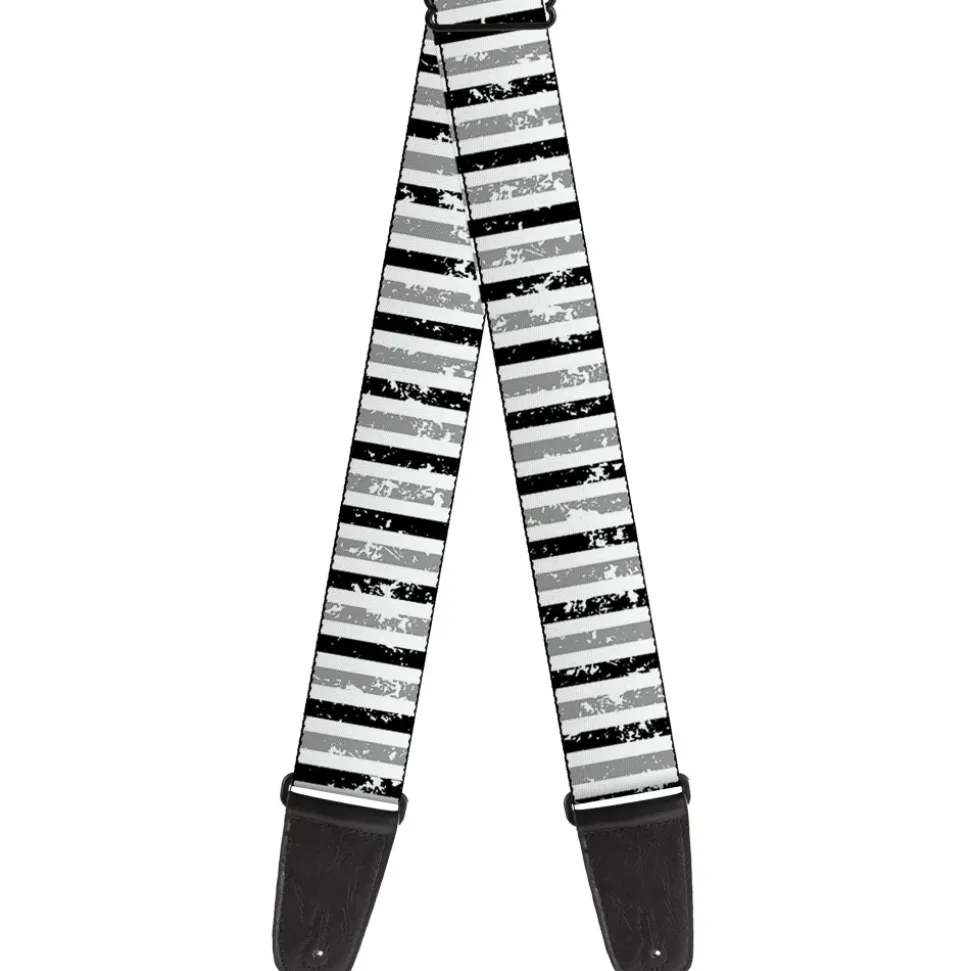 Guitar Strap - Vertical Stripes White Black Gray