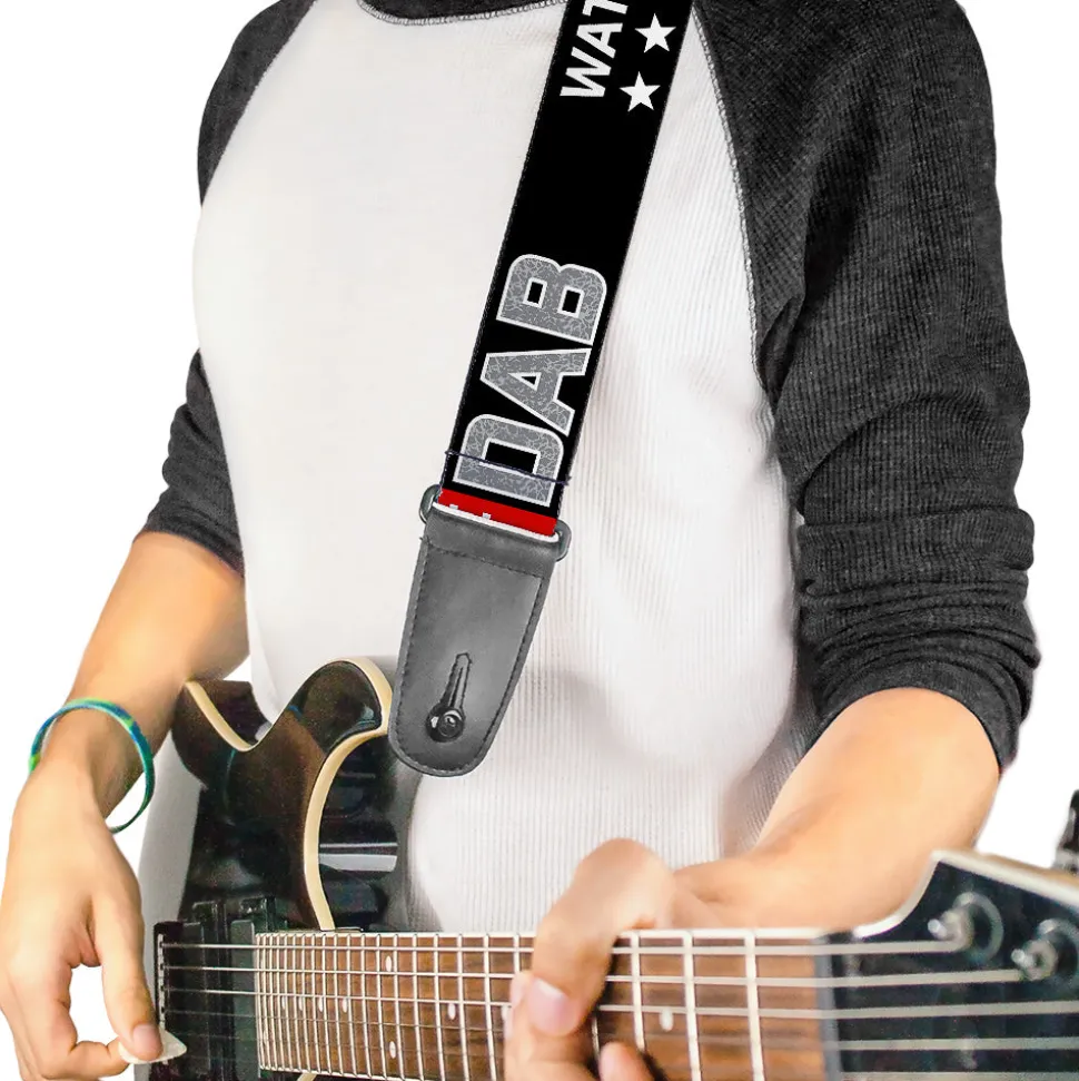 Guitar Strap - WATCH ME DAB Stars Black Red White Crackle Gray