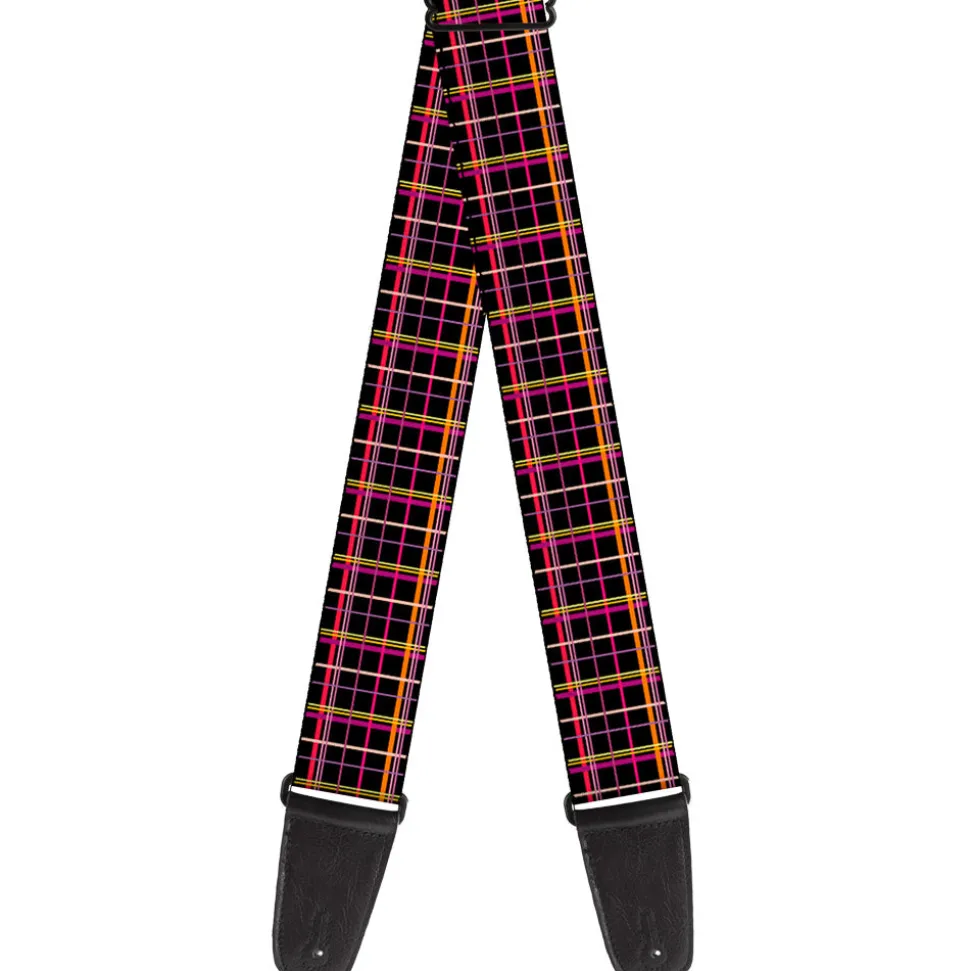 Guitar Strap – Wire Grid Black Orange Purple