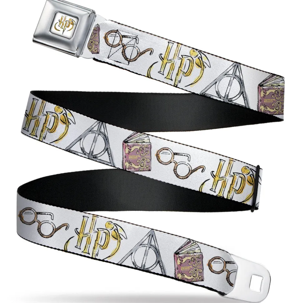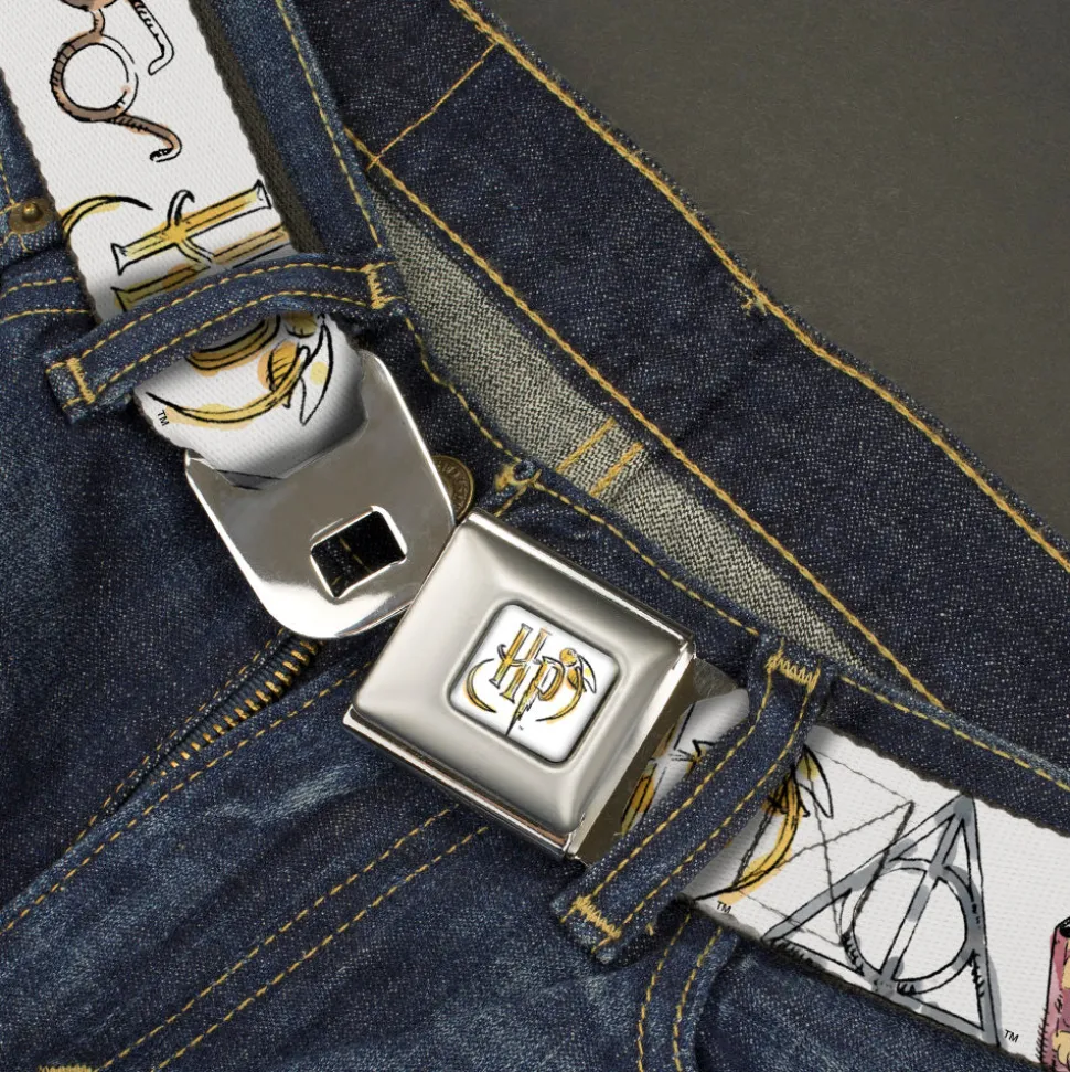 Harry Potter HP Logo Watercolor Full Color White/Yellows Seatbelt Belt – Harry Potter 4-Icons Watercolor White/Multi Color Webbing