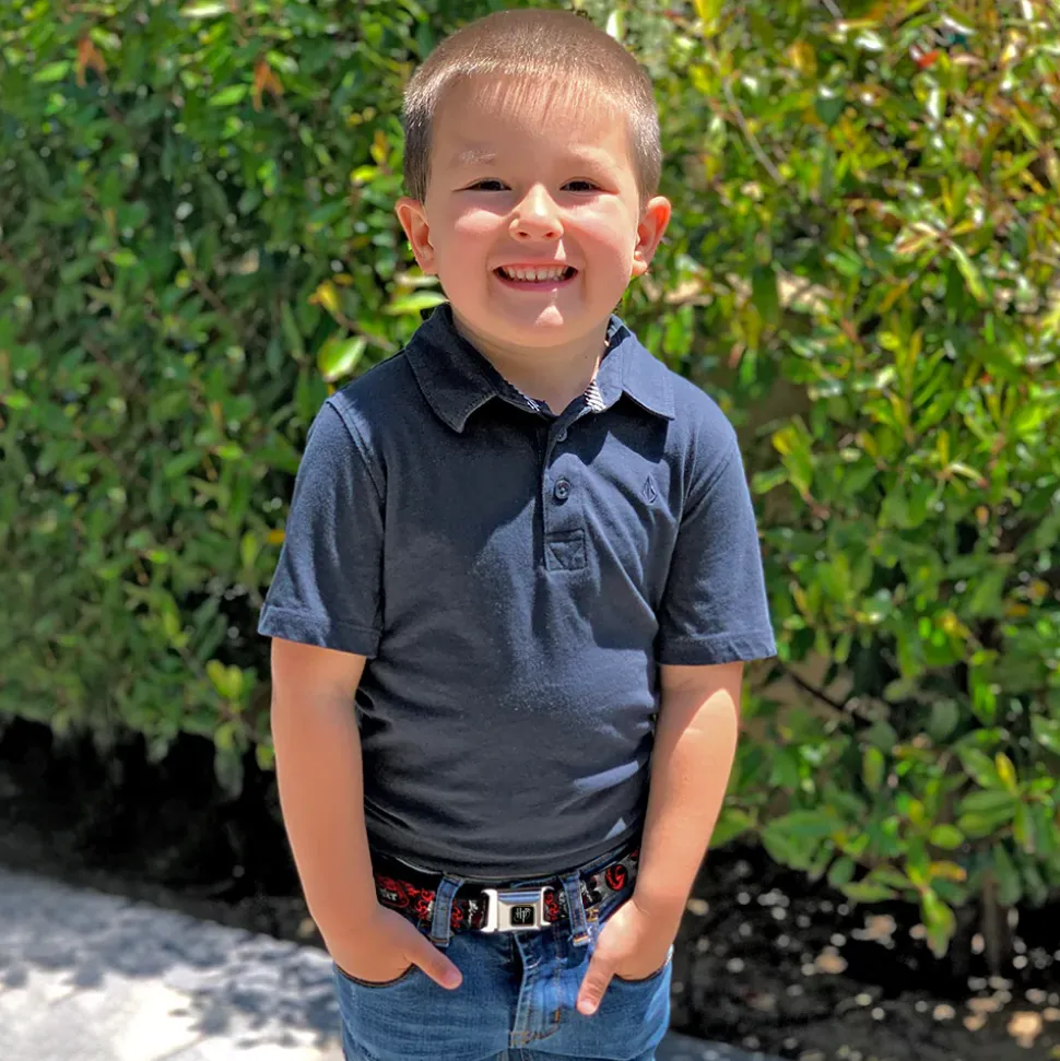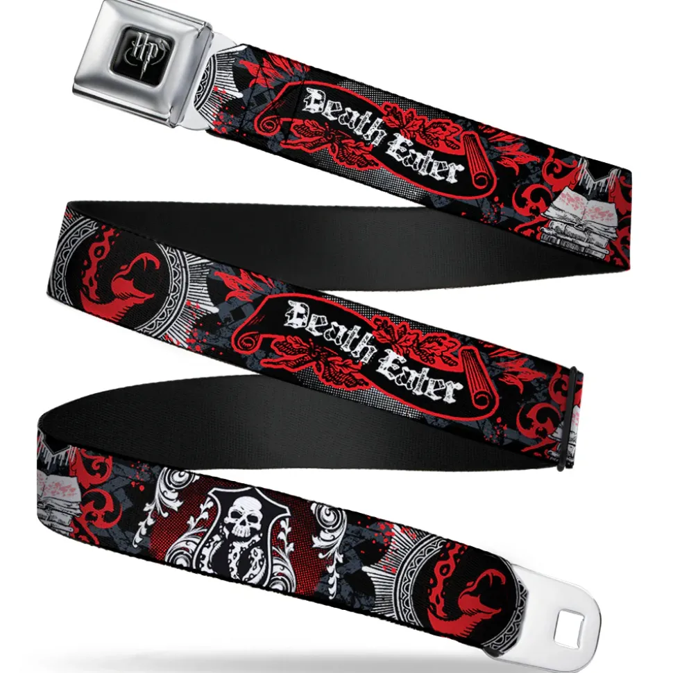 Harry Potter Logo Full Color Black/White Seatbelt Belt – DEATH EATER Scroll/Symbol Black/Gray/White/Red Webbing