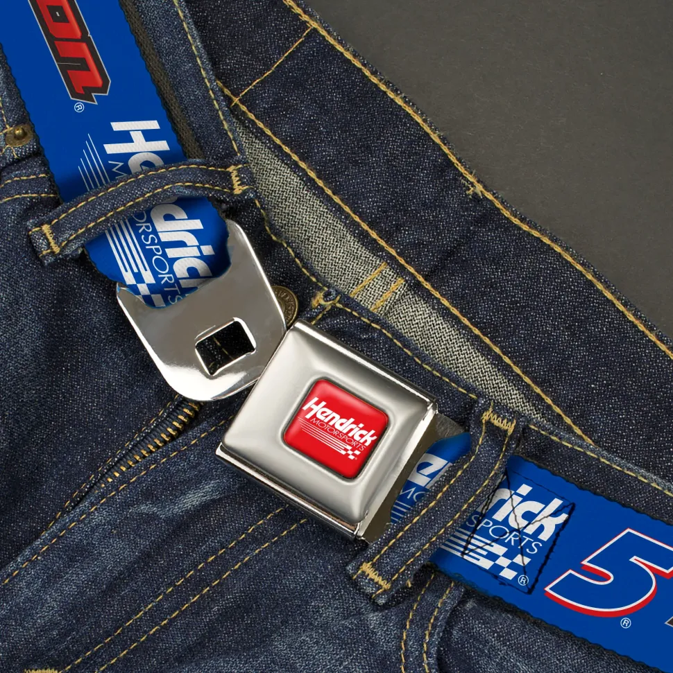 HENDRICK MOTORSPORTS Checker Logo Full Color Red/White Seatbelt Belt – KYLE LARSON #5 Hendrick Motorsports Racing Logo Blue/White/Red Webbing