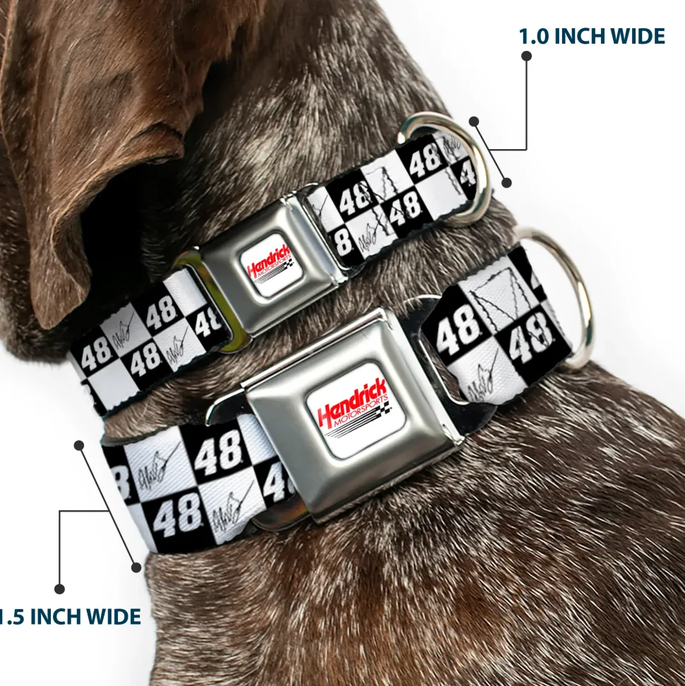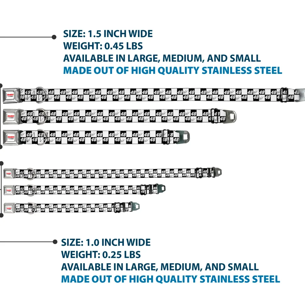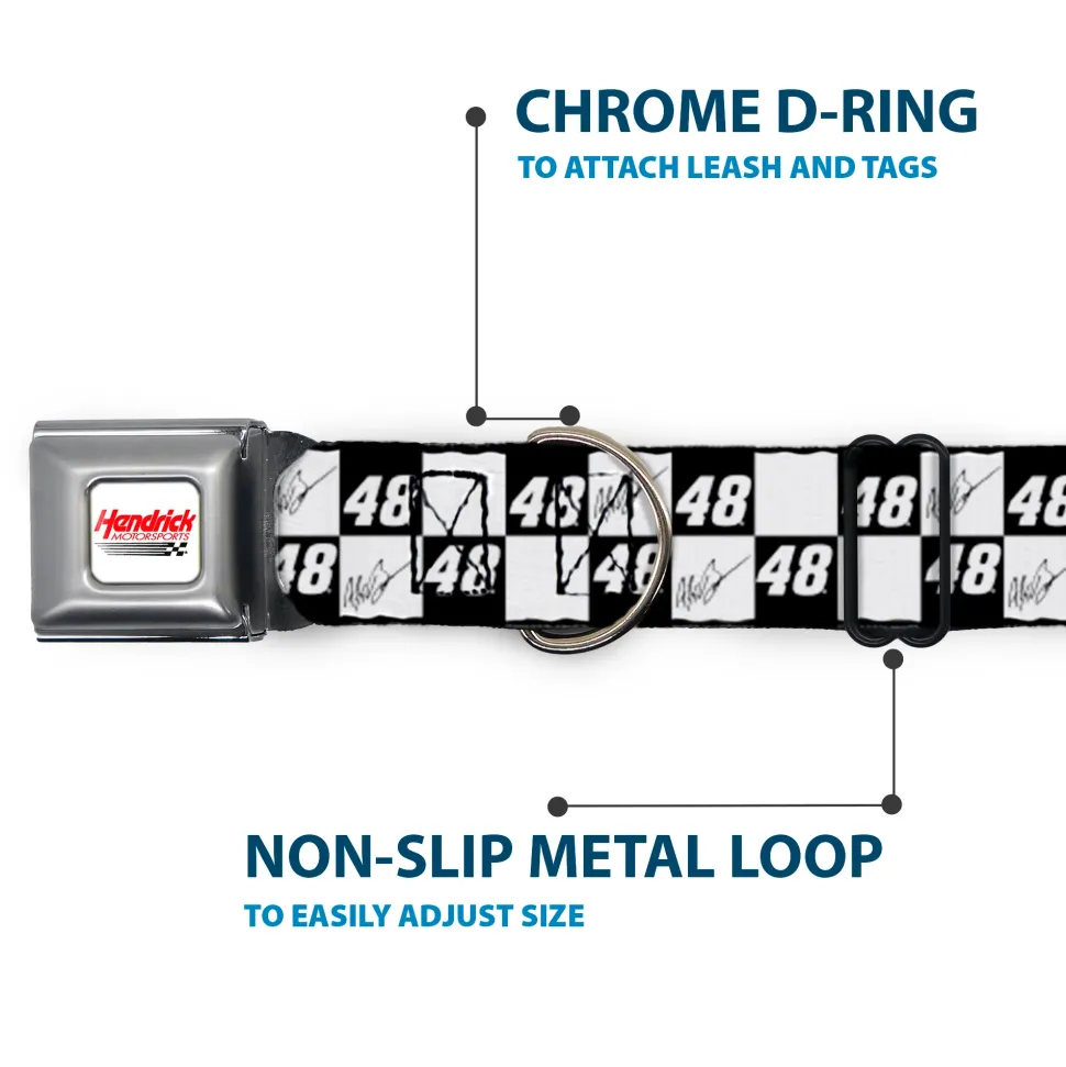 Your dog will be the talk of the town when people notice they’re wearing this awesome SeatBelt Dog Collar! Made from high-density polyester and durable steel components, this collar is built to last. It features beautiful vibrant artwork. The buckle is a miniature authentic SeatBelt Buckle, so you press the center button to release the clasp. This product is assembled in the USA by Buckle-Down Inc. and officially licensed by Hendrick Motorsports.