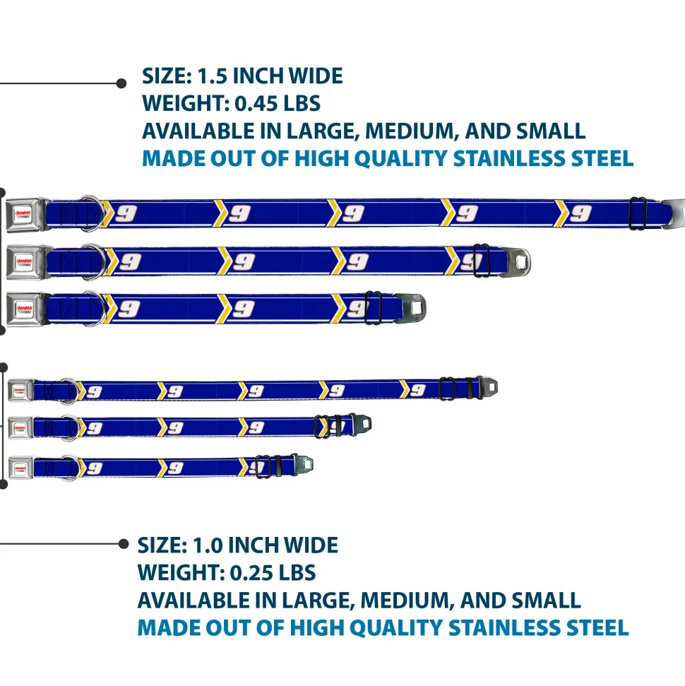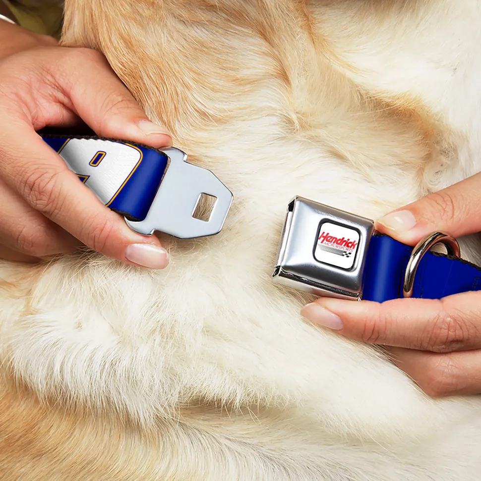 HENDRICK MOTORSPORTS Checker Logo Full Color Red/White Seatbelt Buckle Collar – Chase Elliott #9 Car Scheme Blue/Yellow/White