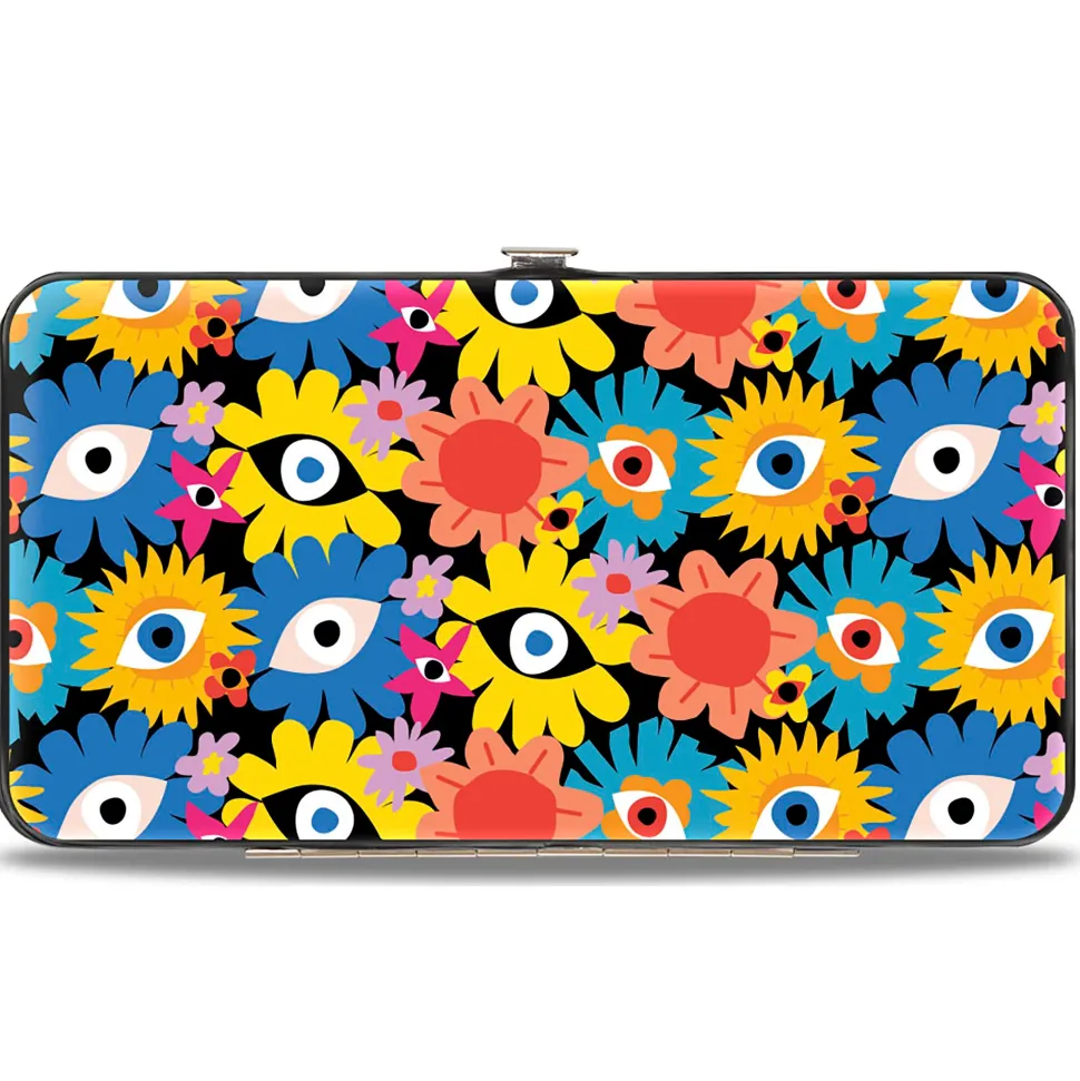 Hinged Wallet - Funky Eye Flowers Black/Multi Color