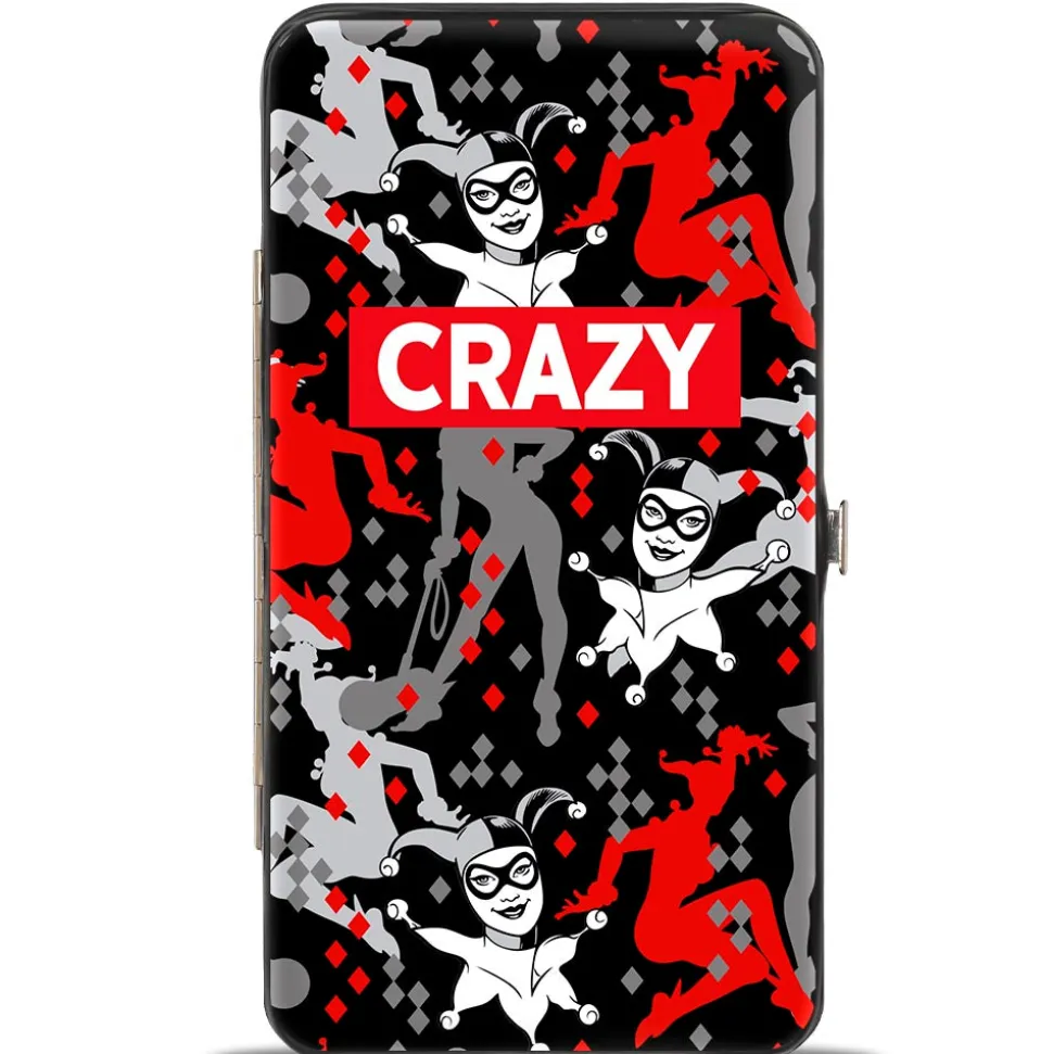 Hinged Wallet - Harley Quinn CRAZY Face Silhouette Poses Diamonds Black Grays Red White