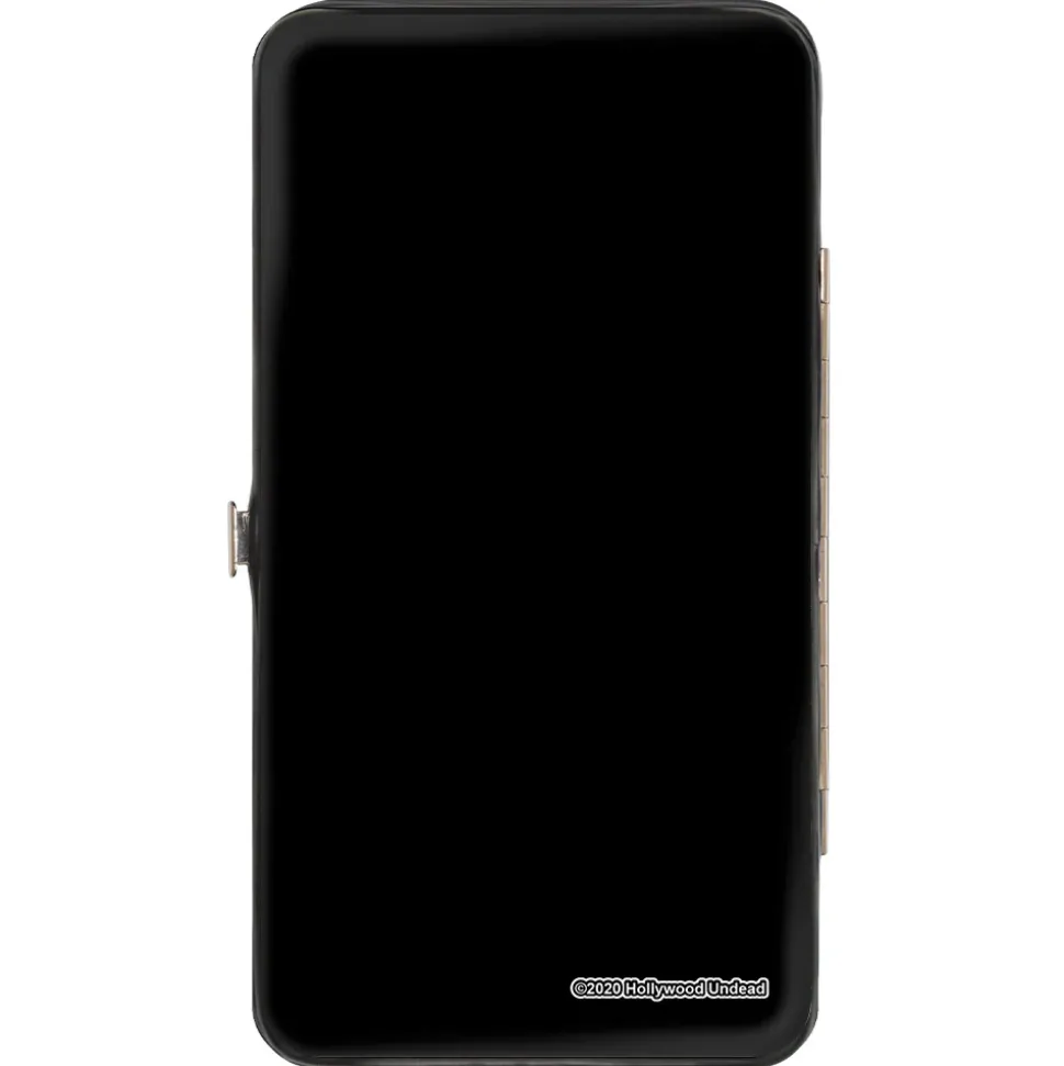 You’re going to love this wallet! Stylish and sleek, this hinged wallet is made from vegan leather and stainless steel. It measures 7.0×4.0x0.75 Inches, with 2 billfolds, 4 card slots, and a windowed ID holder. The gorgeous artwork is applied using the latest printing technology, so it will hold up well over time. This product is Made in USA by Buckle-Down, Inc. and Officially Licensed by Hollywood Undead.