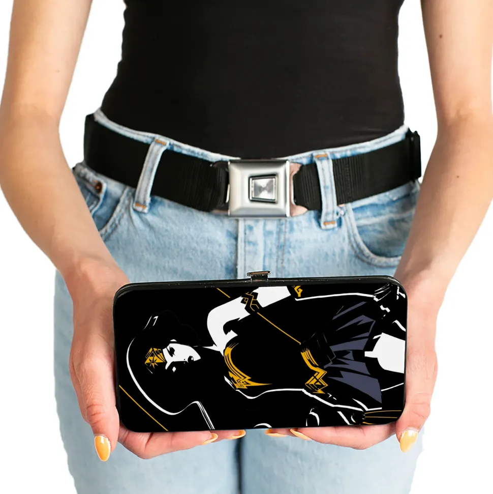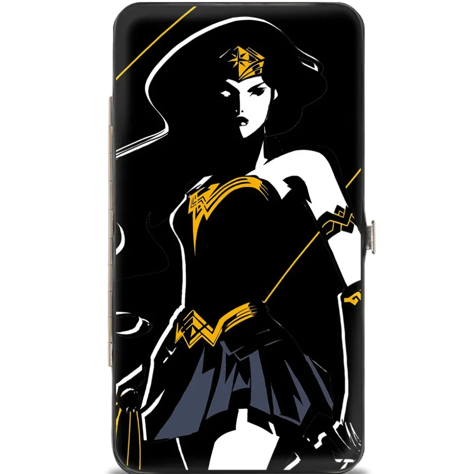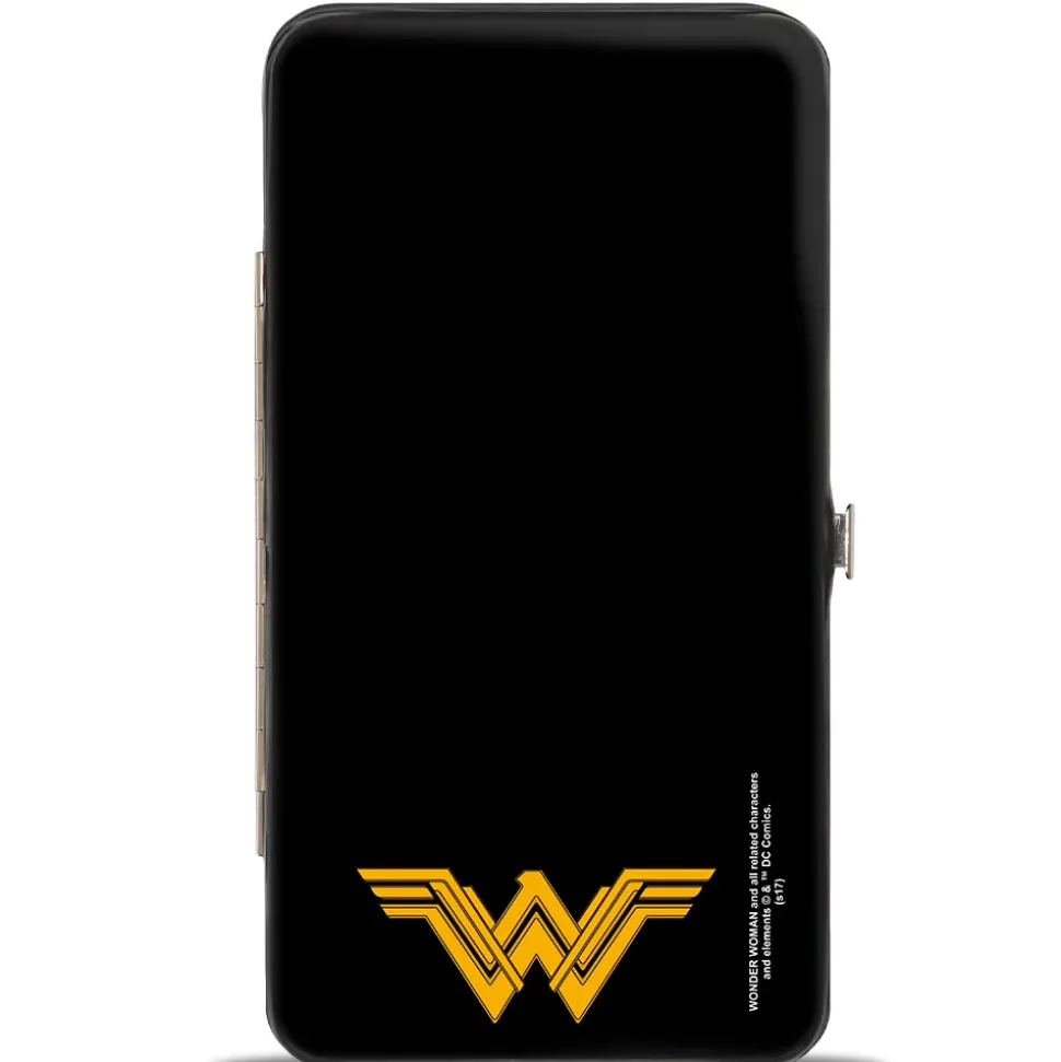 Hinged Wallet - Justice League 2017 Wonder Woman Pose + Icon Black White Gold Gray