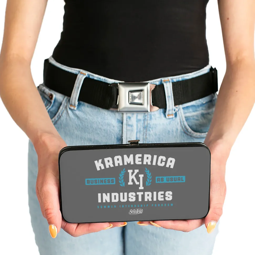 You’re going to love this wallet! Stylish and sleek, this hinged wallet is made from vegan leather and stainless steel. It measures 7.0×4.0x0.75 Inches, with 2 billfolds, 4 card slots, and a windowed ID holder. The gorgeous artwork is applied using the latest printing technology, so it will hold up well over time. This product is Made in USA by Buckle-Down, Inc. and Officially Licensed by Seinfeld.