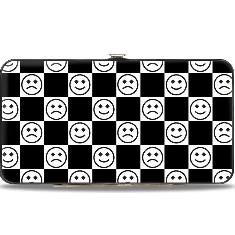 Hinged Wallet - Smiley Sad Face Checker Black/White