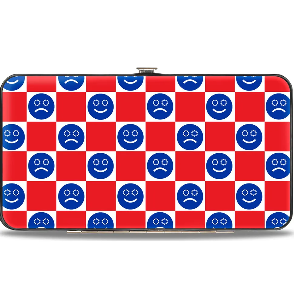 Hinged Wallet - Smiley Sad Face Checker Red/White/Blue