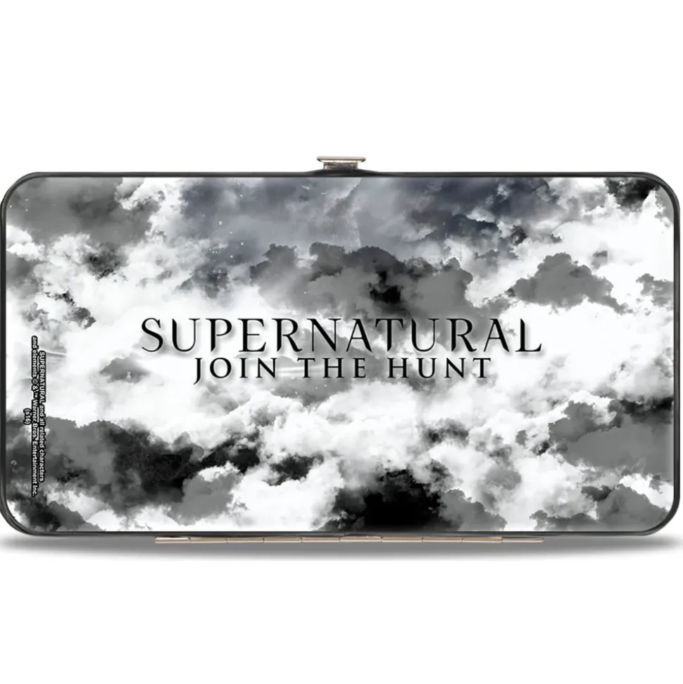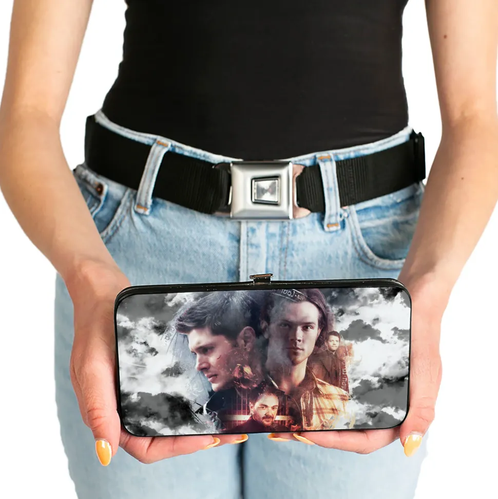 Hinged Wallet – Supernatural 4-Character Collage + Logo Clouds Grays Sepia