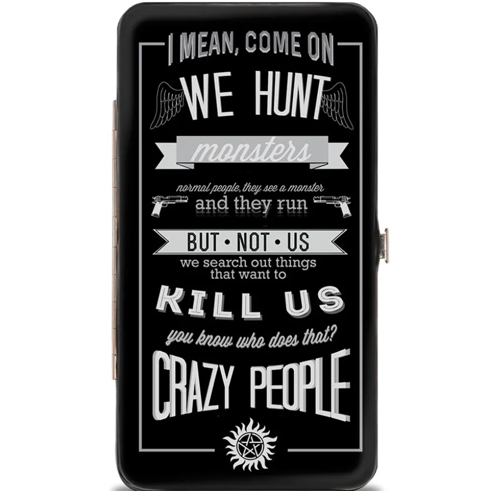 Hinged Wallet – Supernatural Dean CRAZY PEOPLE Quote Winchester Pentagram Black Grays