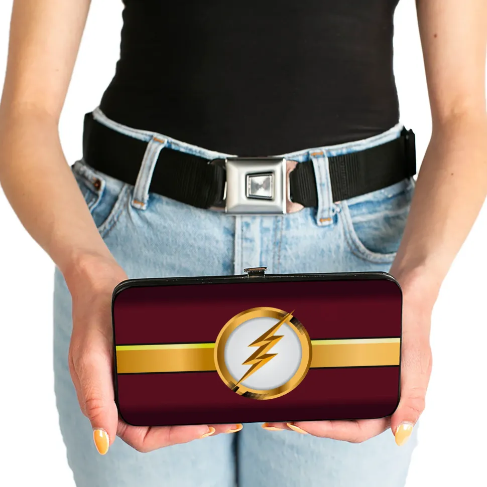 Hinged Wallet – The Flash Logo10 Stripe Burgundy Golds White