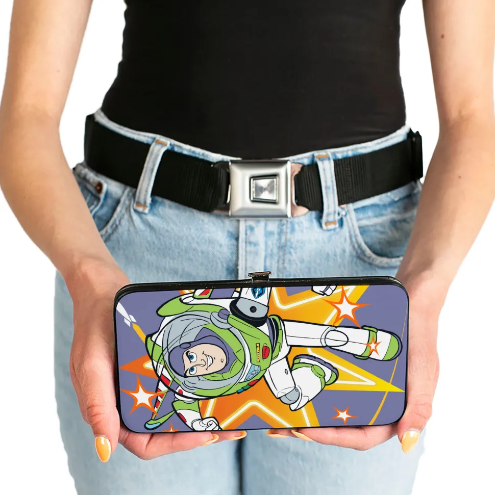 Hinged Wallet – Toy Story Buzz Lightyear Action Pose + Striping Red White Green Purple