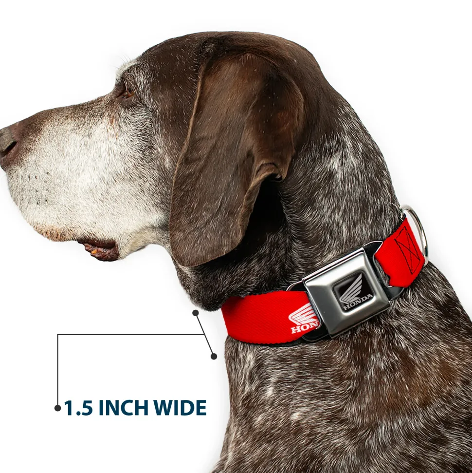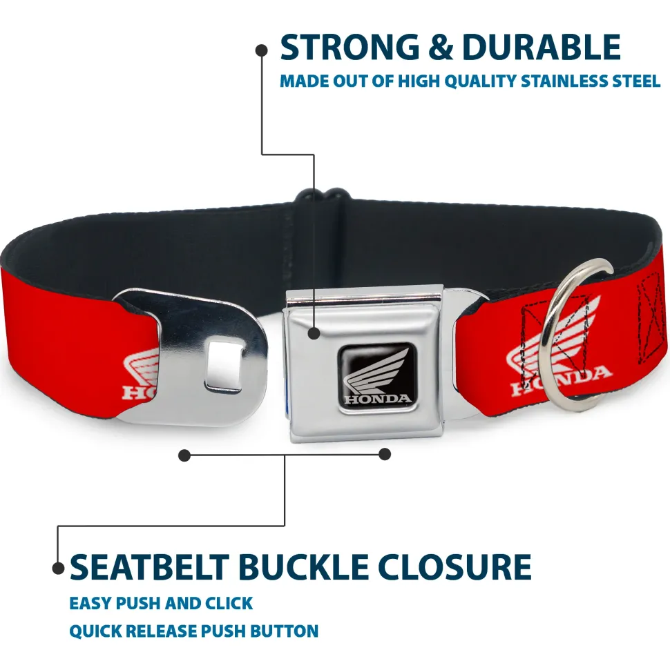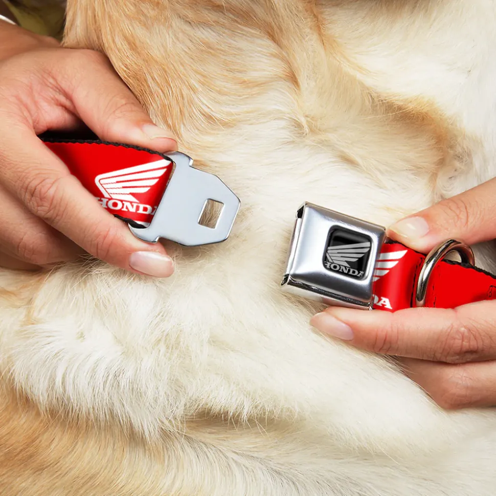 Your dog will be the talk of the town when people notice they’re wearing this awesome SeatBelt Dog Collar! Made from high-density polyester and durable steel components, this collar is built to last. It features beautiful vibrant artwork. The buckle is a miniature authentic SeatBelt Buckle, so you press the center button to release the clasp. This product is Made in USA by Buckle-Down Inc. and officially licensed by Honda Motorsports.