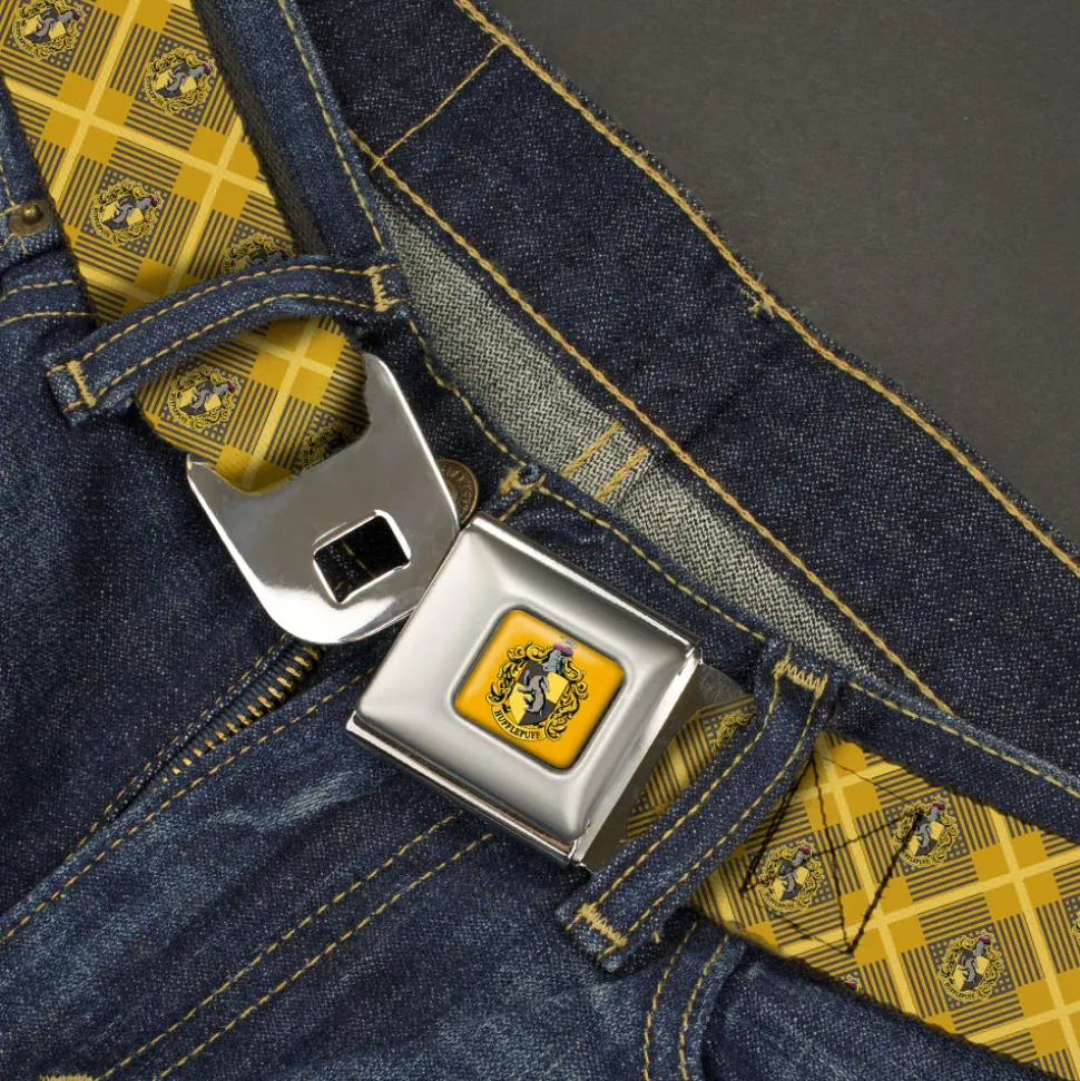 HUFFLEPUFF Crest Full Color Gold Seatbelt Belt – Harry Potter Hufflepuff Crest Plaid Yellows/Gray Webbing