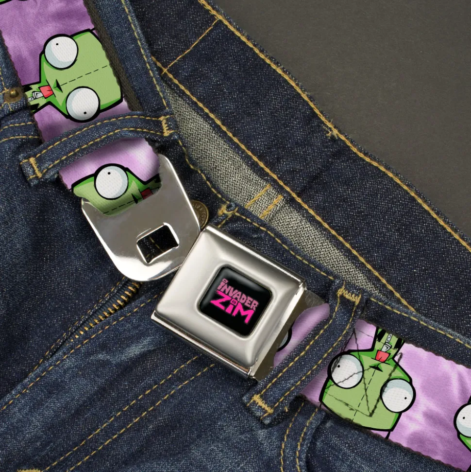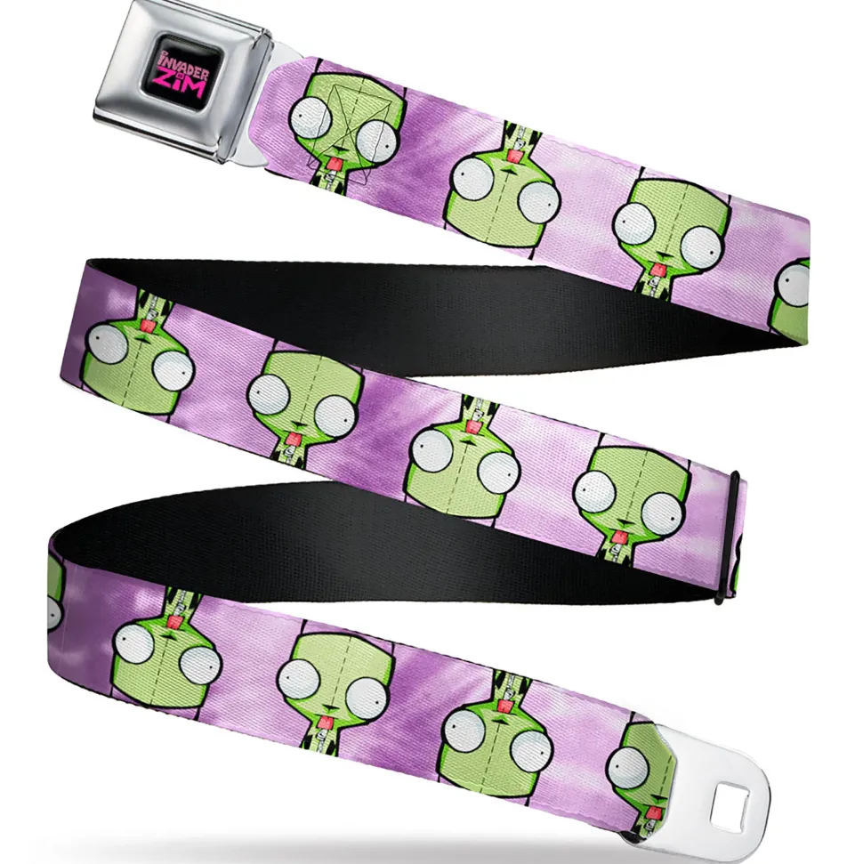 INVADER ZIM Title Logo Full Color Pink/Green Seatbelt Belt – Invader Zim GIR Flip Poses Tie Dye Blues Webbing