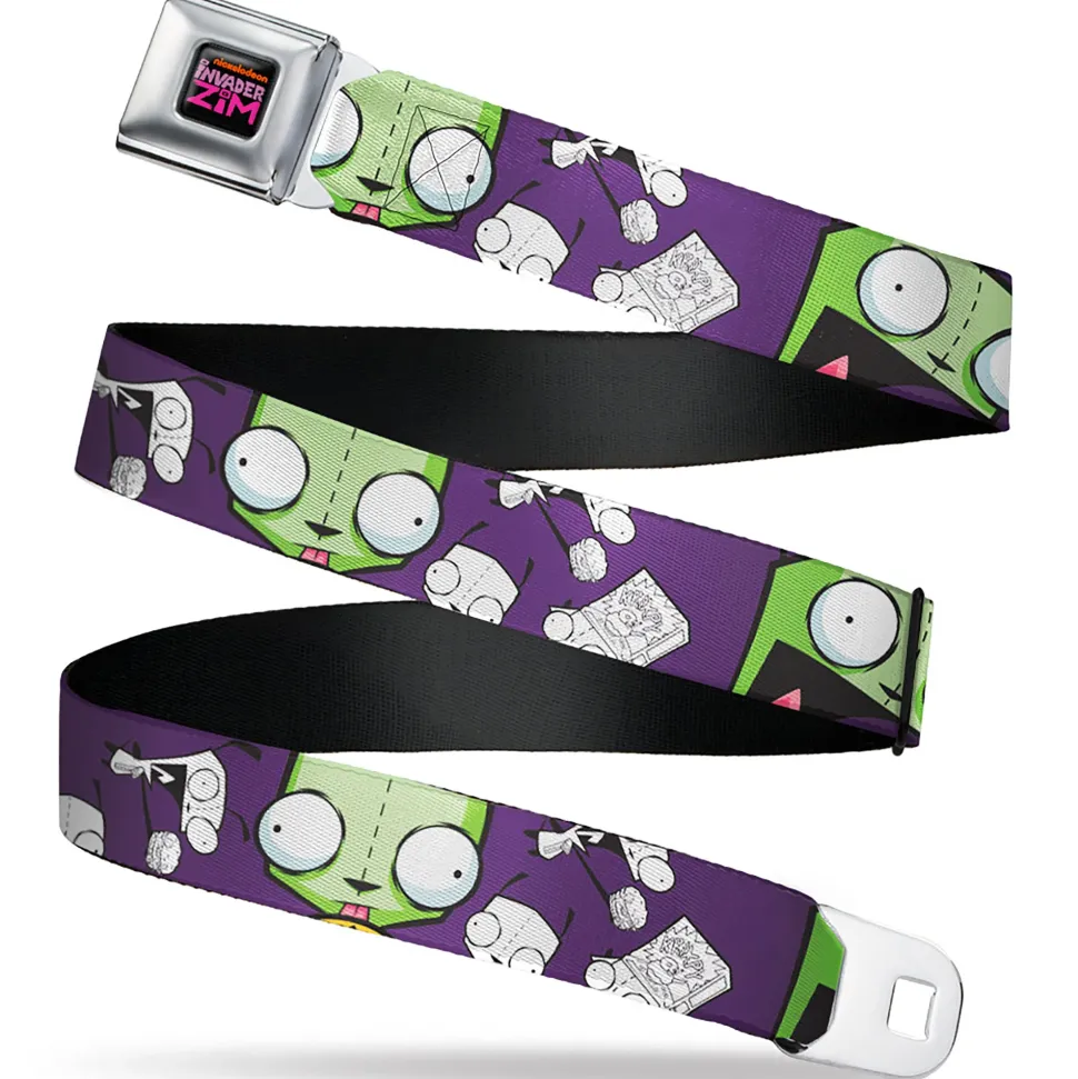 INVADER ZIM Title Logo Full Color Pink/Green Seatbelt Belt – Invader Zim GIR Poses and Sketch Purple Webbing