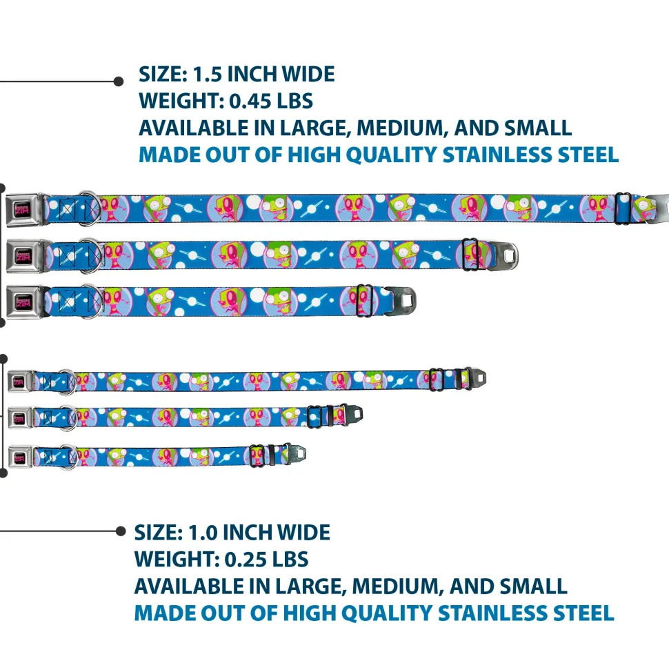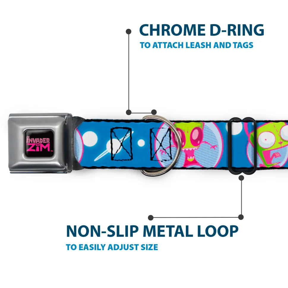 INVADER ZIM Title Logo Full Color Pink/Green Seatbelt Buckle Collar – Invader Zim and GIR Poses and Planets Blue/White
