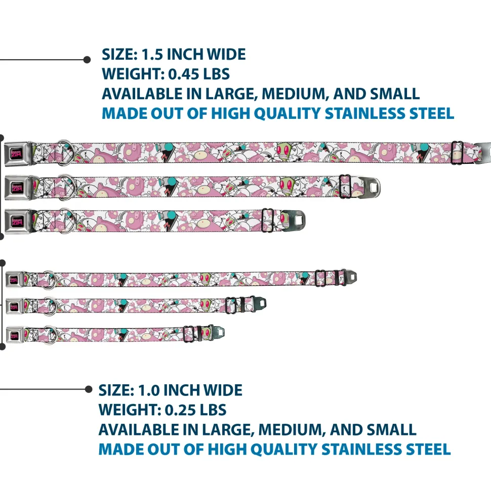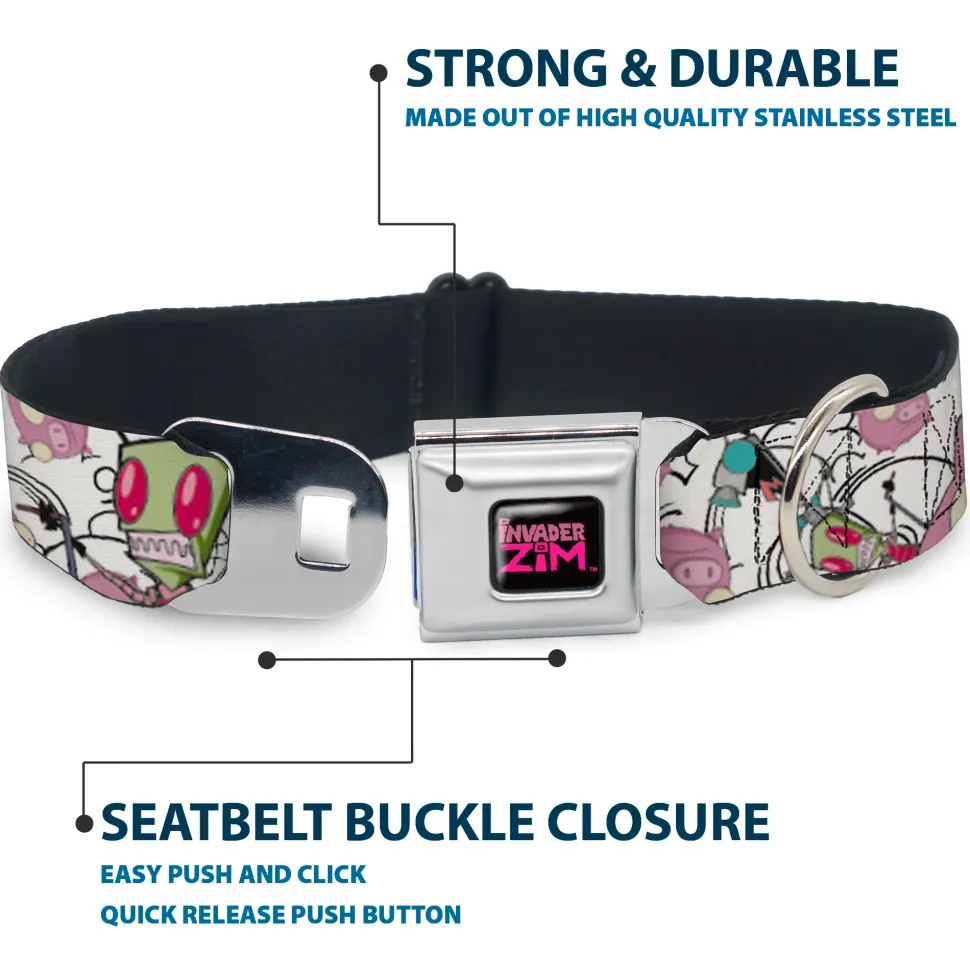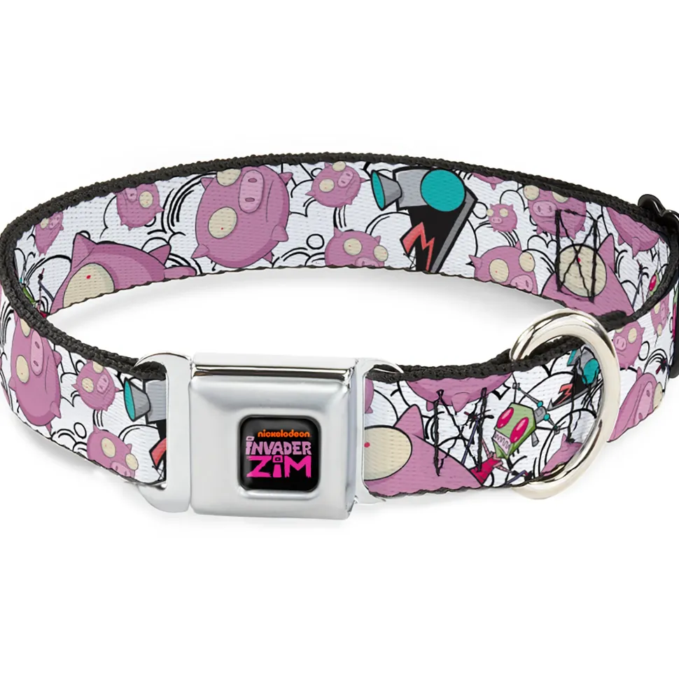 INVADER ZIM Title Logo Full Color Pink/Green Seatbelt Buckle Collar – Invader Zim GIR and Piggy Doddles White/Black