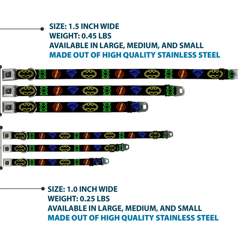 JL Electric Logos Full Color Black/Multi Neon Seatbelt Buckle Collar – Justice League Electric Logos Black/Multi Neon