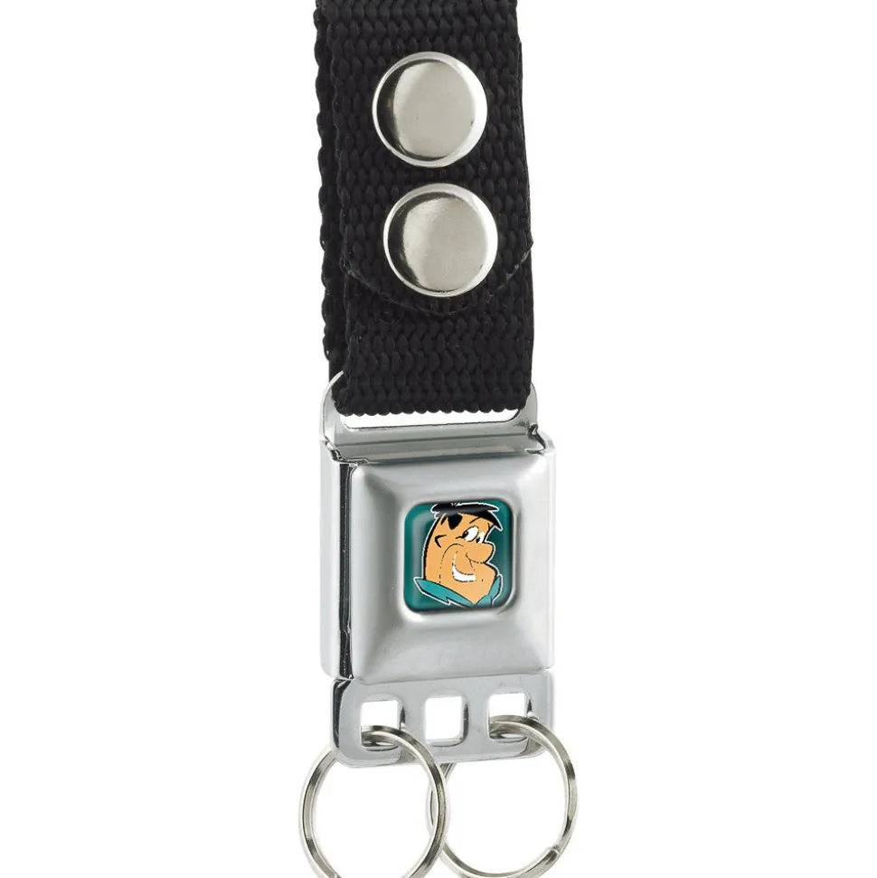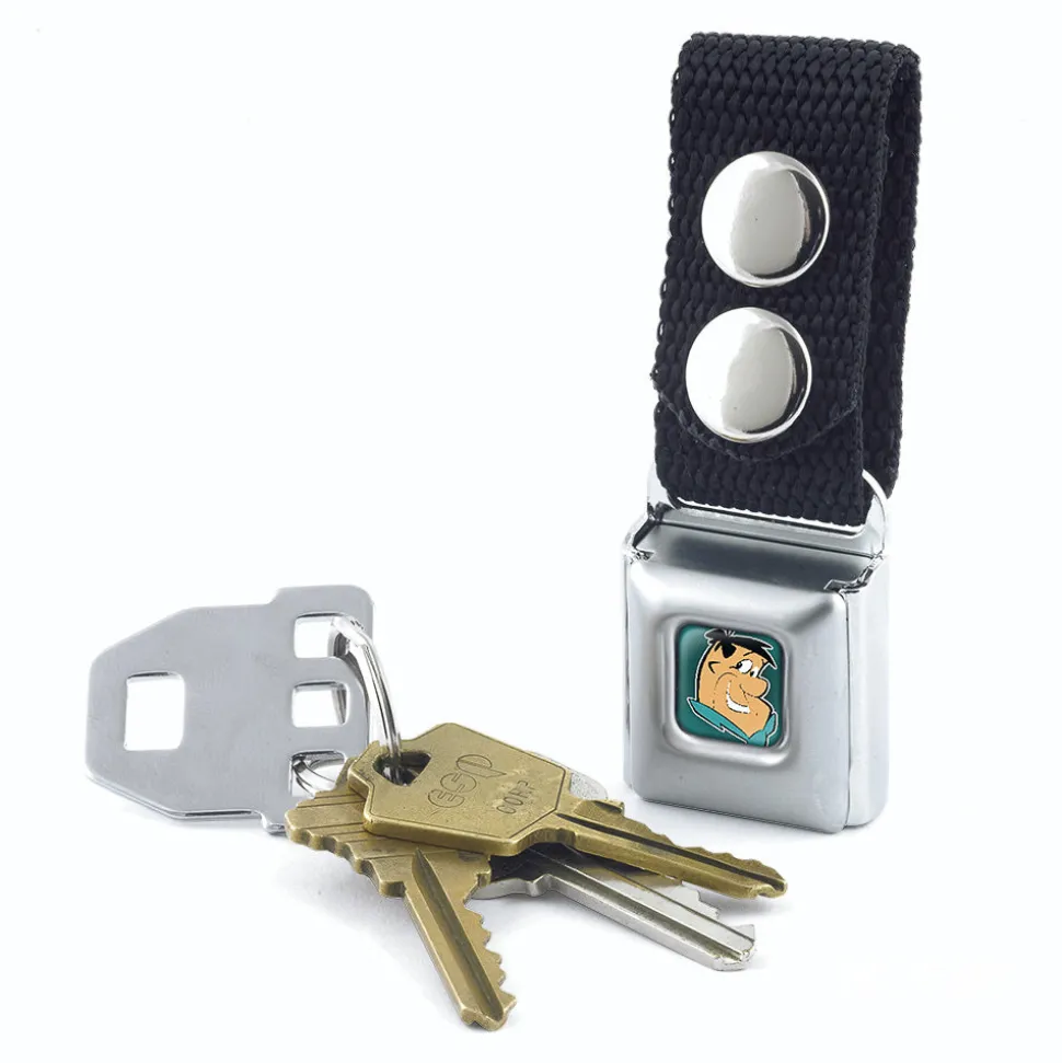 This nifty keychain comes equipped with an authentic SeatBelt Buckle clasp. You can anchor it to a belt loop or bag with two stainless steel snaps and conveniently detach your keys by pressing the center button. The keychain measures 3.0×1.0x0.5 Inches, and is made from nylon and stainless steel. This product is Made in USA by Buckle-Down Inc. and Officially Licensed by The Flintstones.