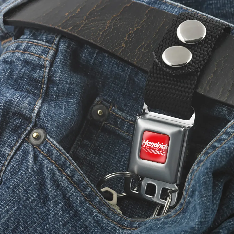 This nifty keychain comes equipped with an authentic SeatBelt Buckle clasp. You can anchor it to a belt loop or bag with two stainless steel snaps and conveniently detach your keys by pressing the center button. The keychain measures 3.0×1.0x0.5 Inches, and is made from nylon and stainless steel. This product is Made in USA by Buckle-Down Inc. and Officially Licensed by Hendrick Motorsports.