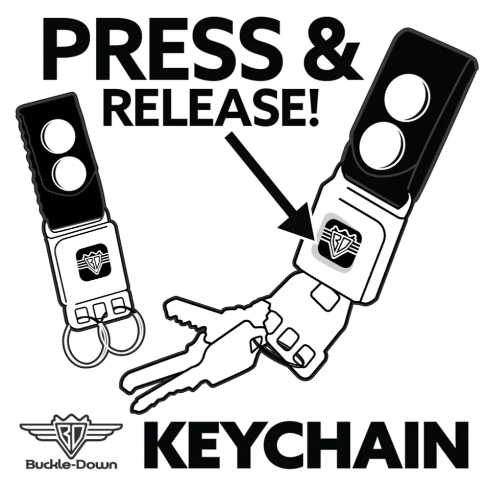 - This nifty keychain is equipped with an authentic SeatBelt Buckle clasp.
