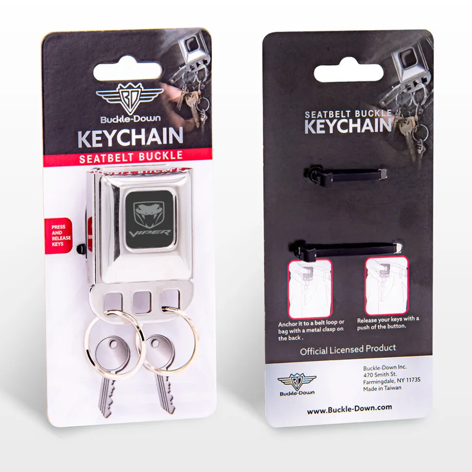 - This nifty keychain is equipped with an authentic SeatBelt Buckle clasp.