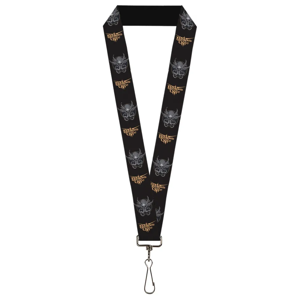 Lanyard – 1.0" – BALDUR'S GATE III Title Logo and Mind Flayer Icon Black/Grays/Tan