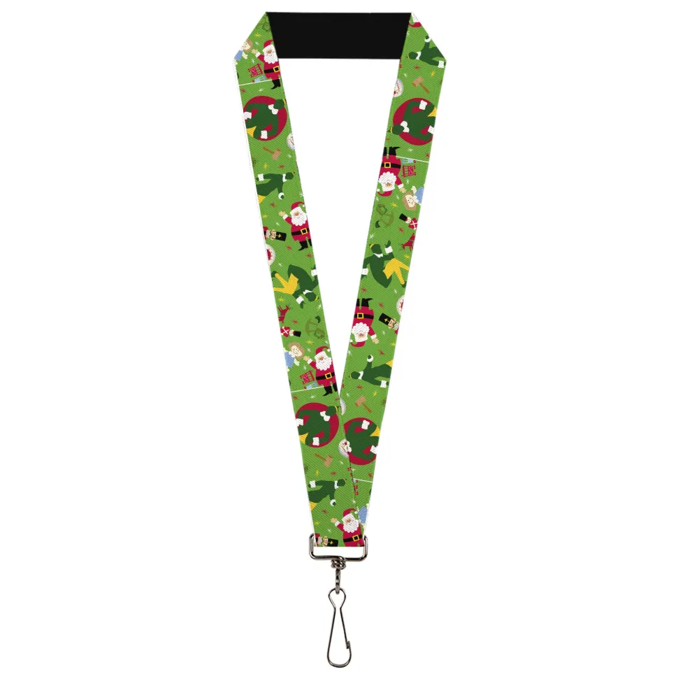 Lanyard - 1.0" - Elf Buddy the Elf Silhouette Poses and Holiday Icons Green/Multi Color