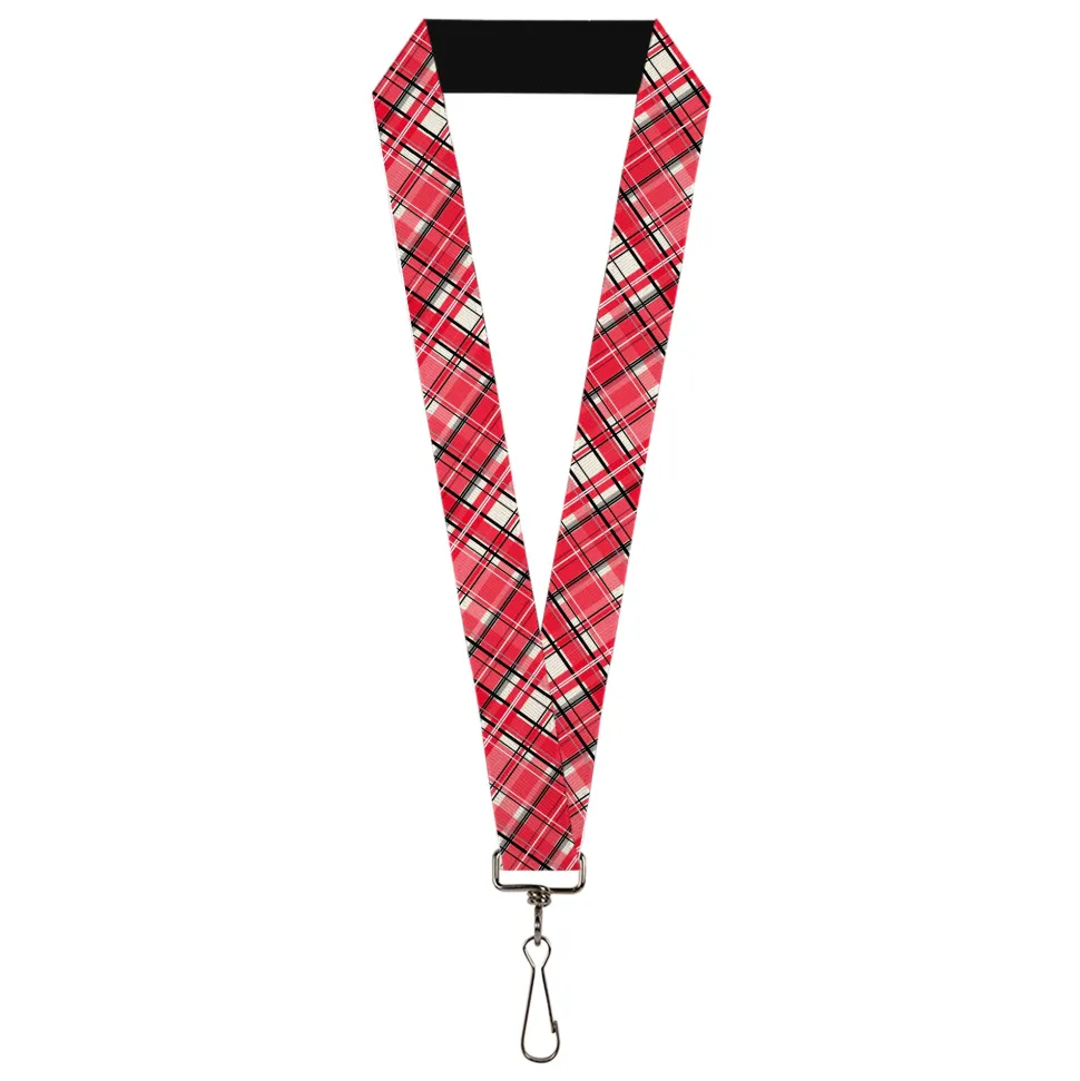 Lanyard – 1.0" – Holiday Christmas Plaid Diagonal White/Red/Black