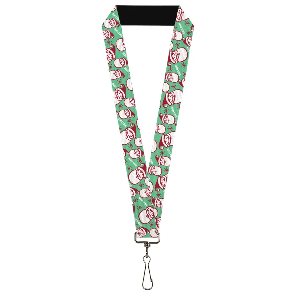 Lanyard - 1.0" - Jolly SANTA CLAUS Christmas Smiling Face Icon and Text Green/Red/White