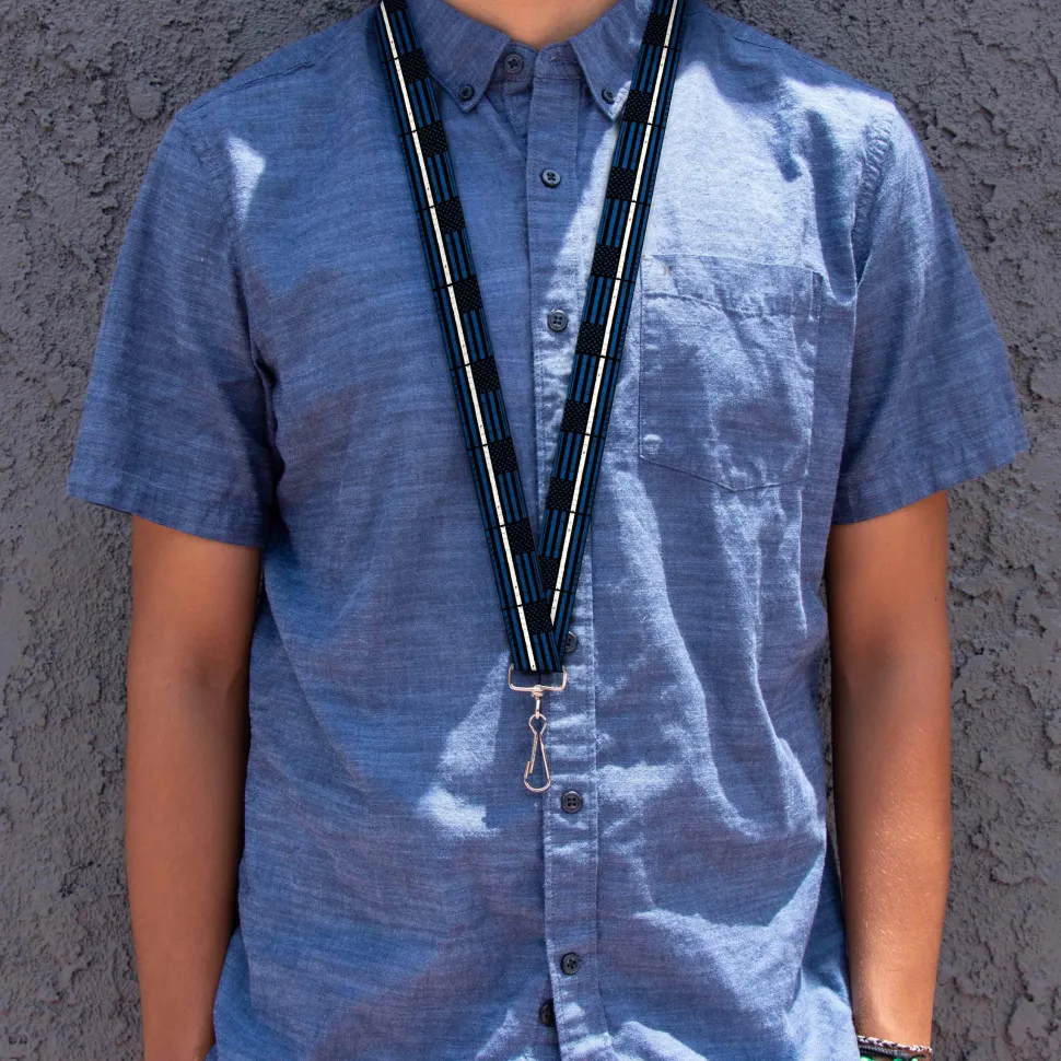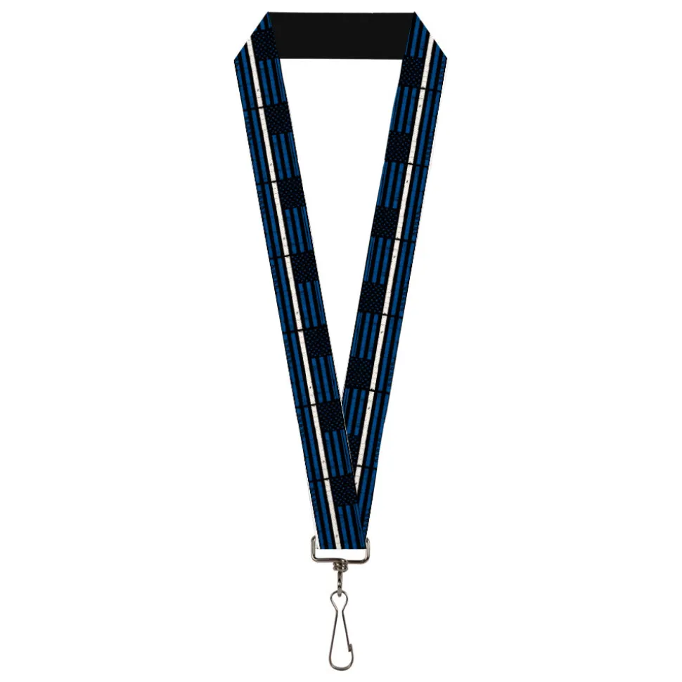Lanyard - 1.0" - Thin White Line Flag Weathered Black/Blue/White