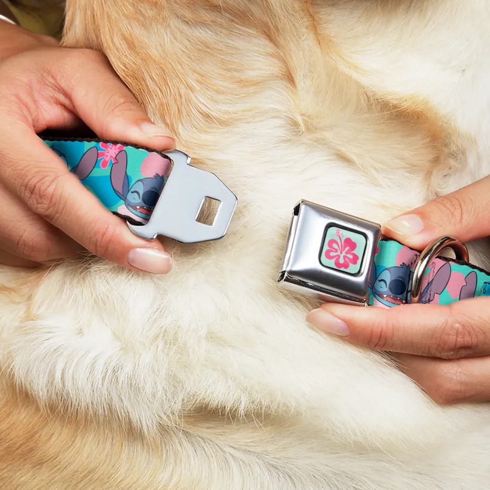 Lilo & Stitch Flower Full Color Blue/Pink Seatbelt Buckle Collar – Lilo & Stitch Stitch Expressions and Tropical Flowers Blues/Pinks