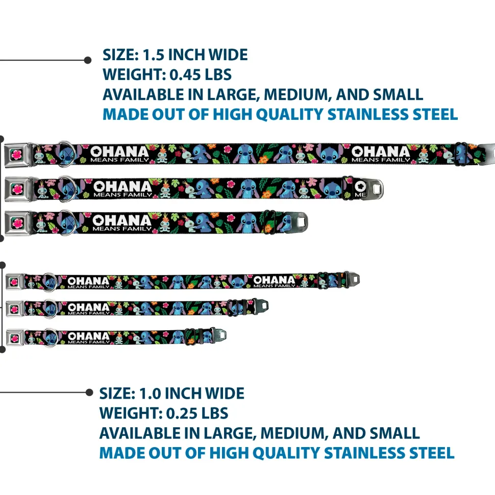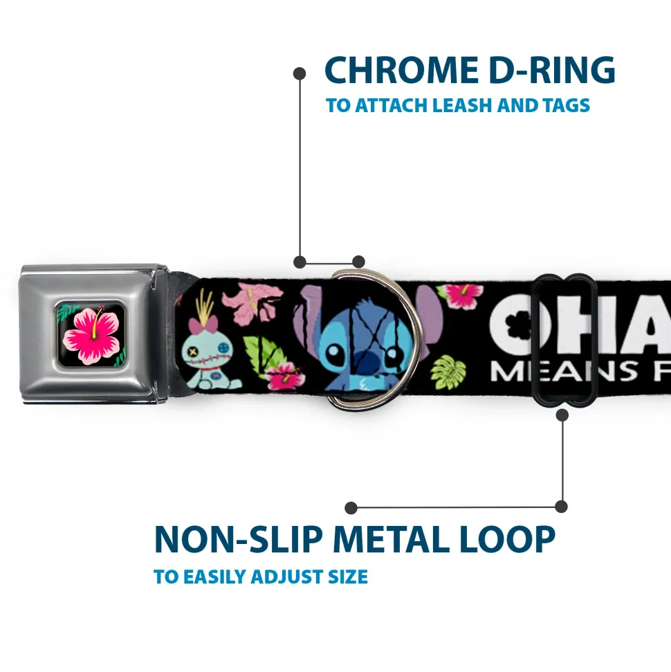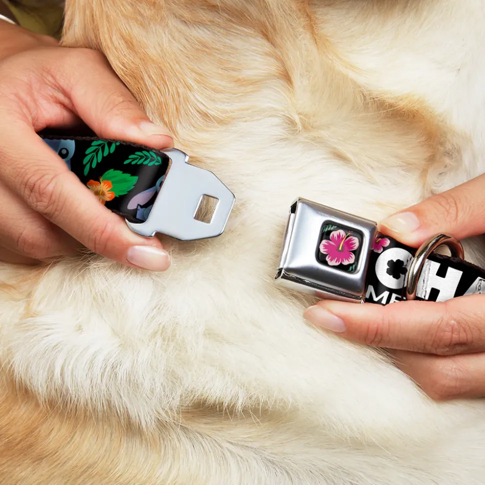 Lilo & Stitch Hibiscus Flower Full Color Black Pink Seatbelt Buckle Collar – OHANA MEANS FAMILY/Stitch & Scrump Poses/Tropical Flora Black/White/Multi Color